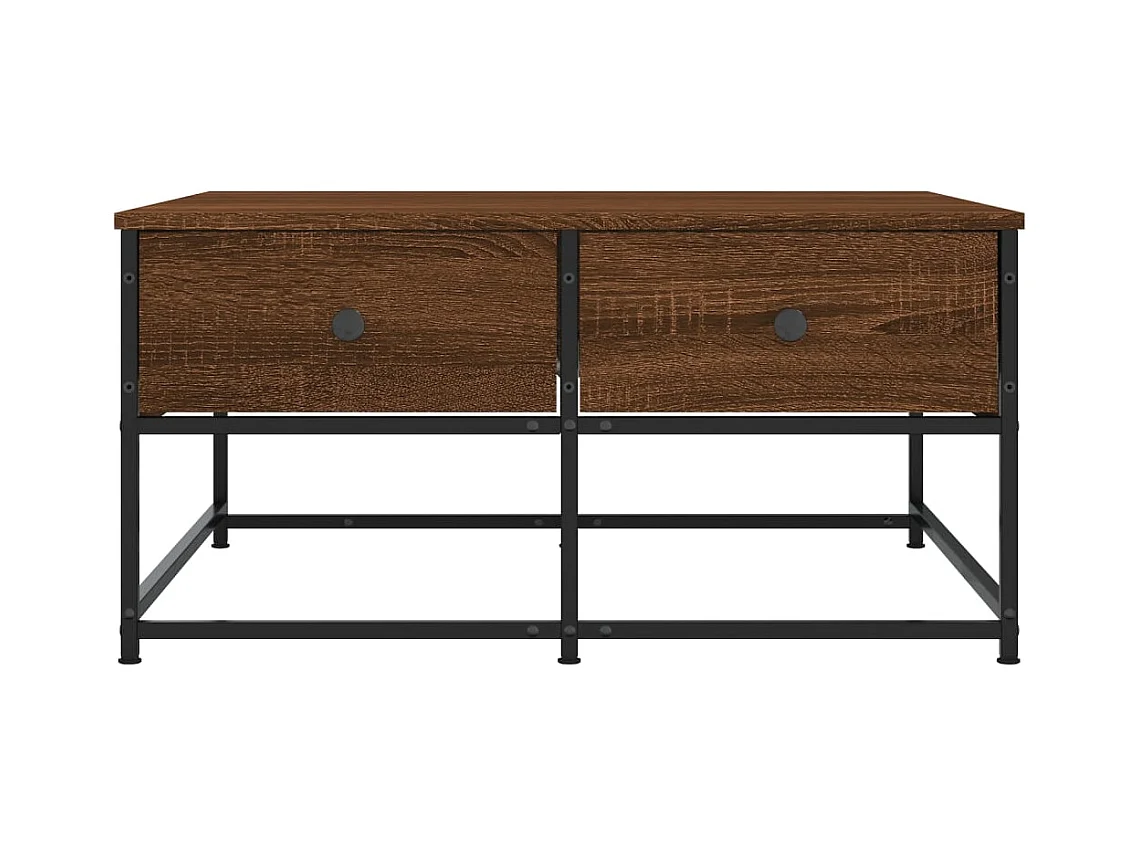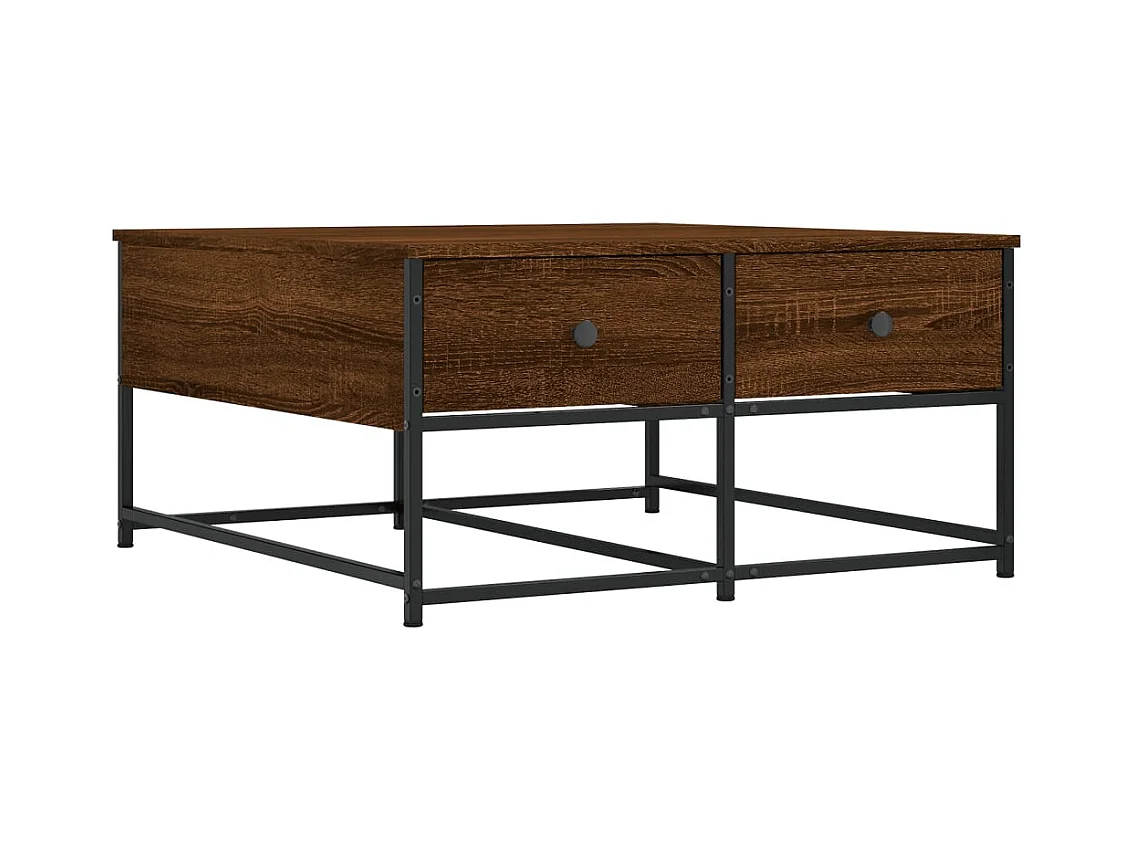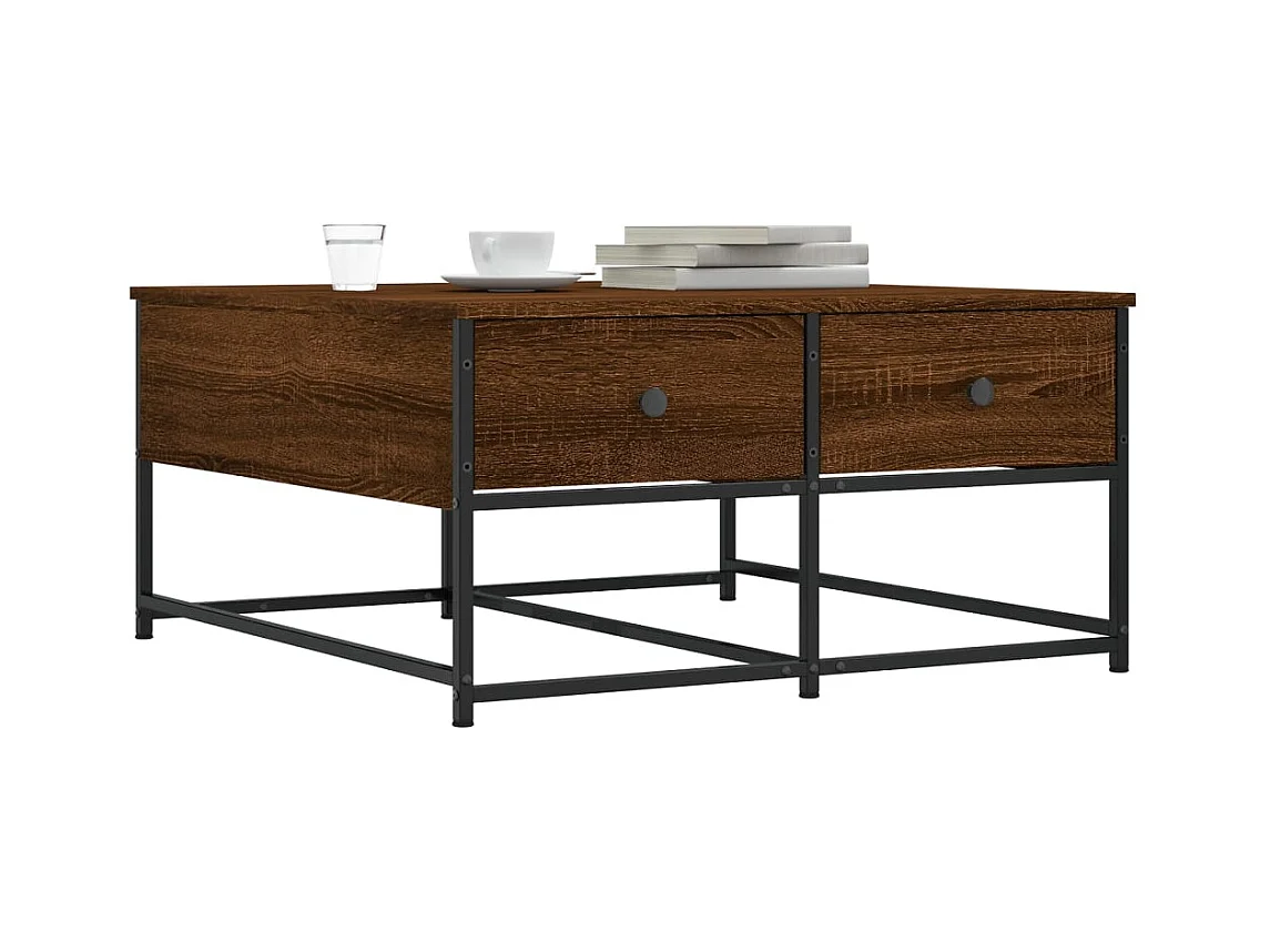 Bruine eiken salontafel 80x80x30 cm bewerkt hout en metaal