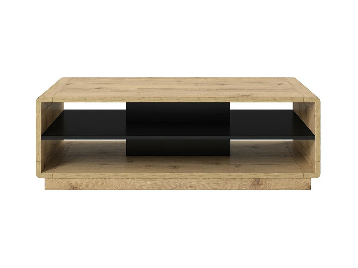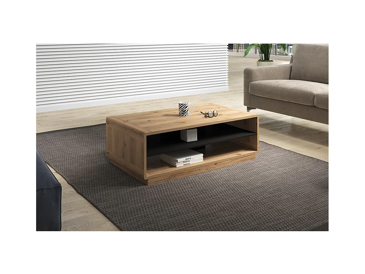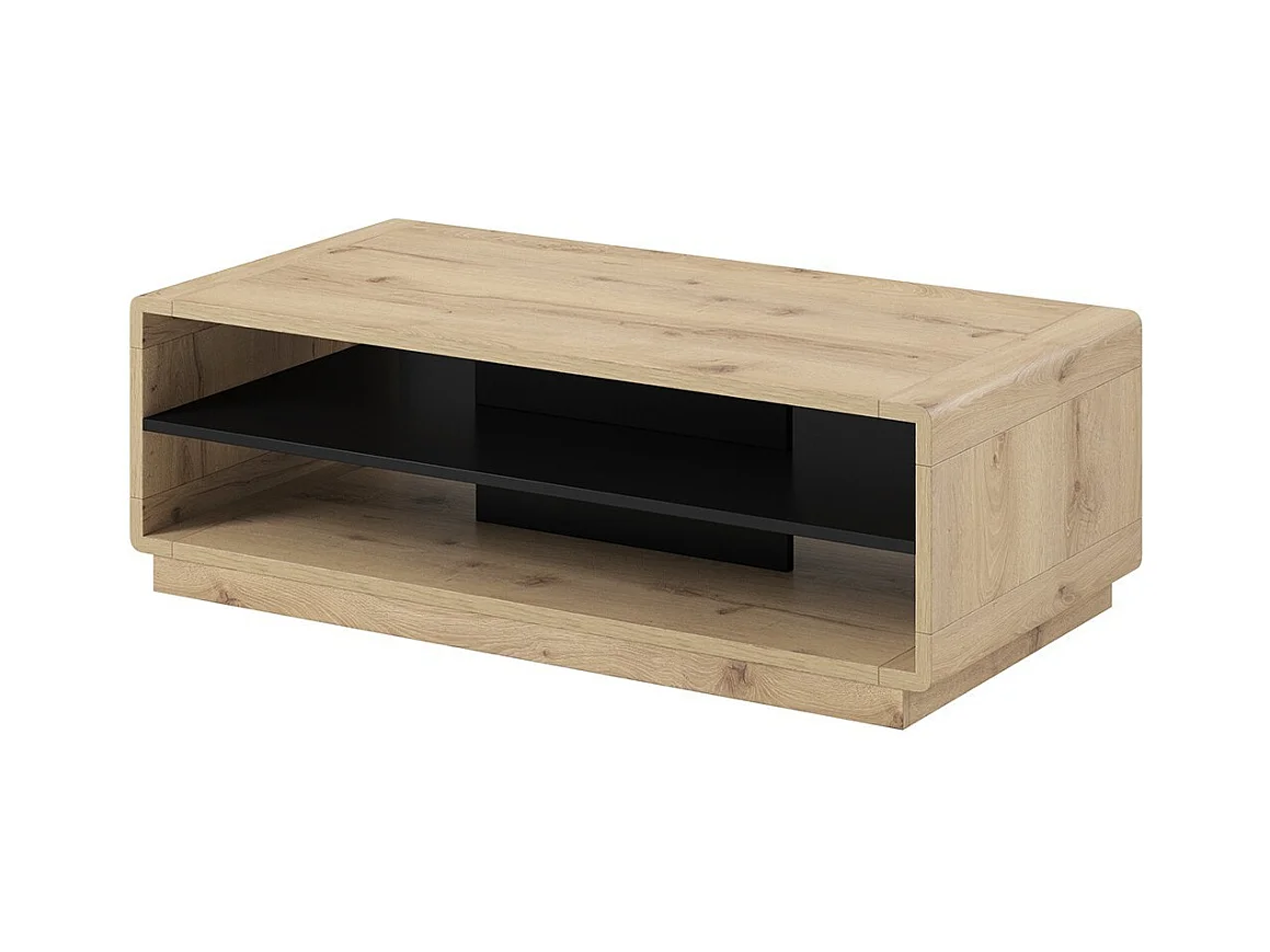 Salontafel HAVANA – Eiken en zwart – Mat zwart blad – Met nis – Natuurlijke en moderne stijl