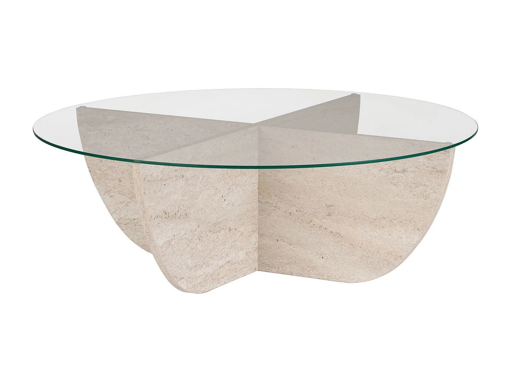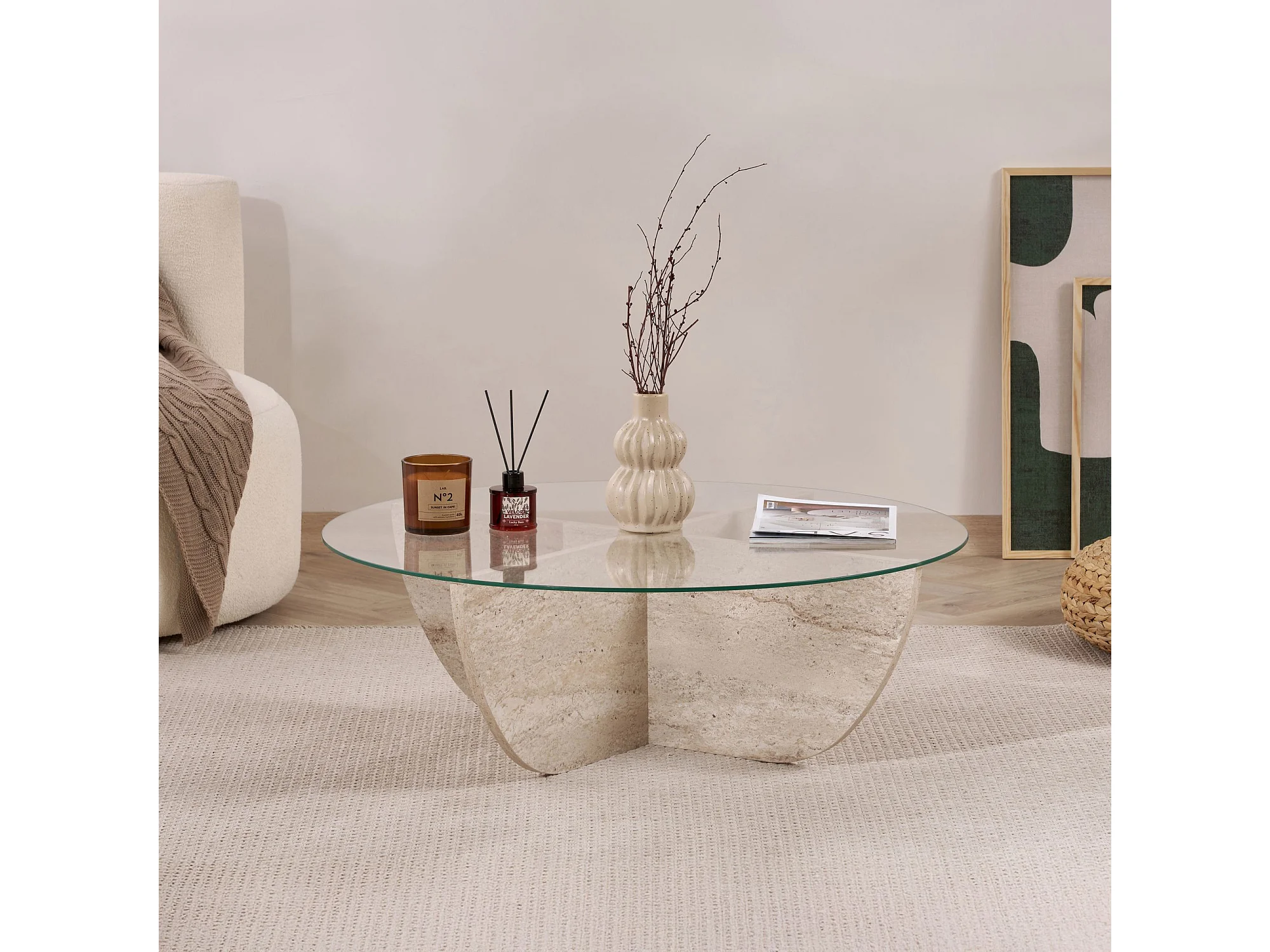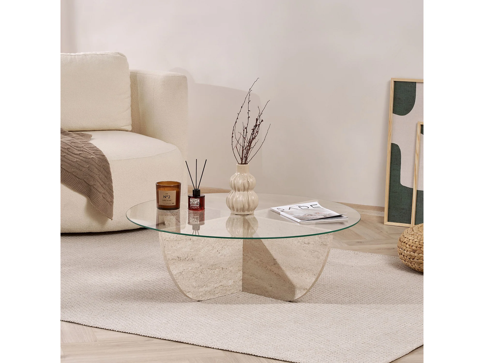 Salontafel Liya" glas 90 x 90 x 30 cm - Travertin