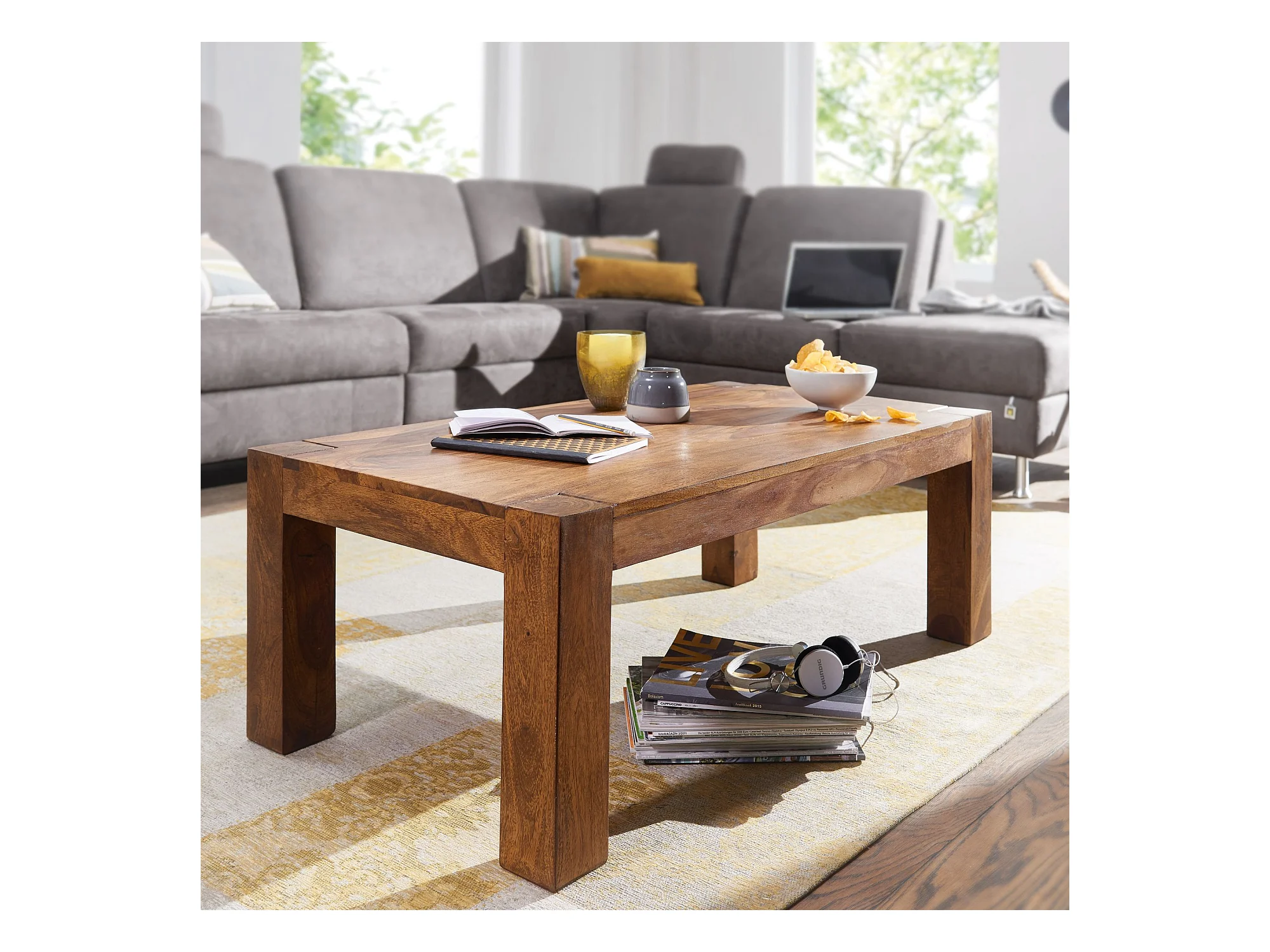 salontafel massief hout Sheesham 110cm breed salontafel ontwerp donkerbruin landelijke stijl tafel
