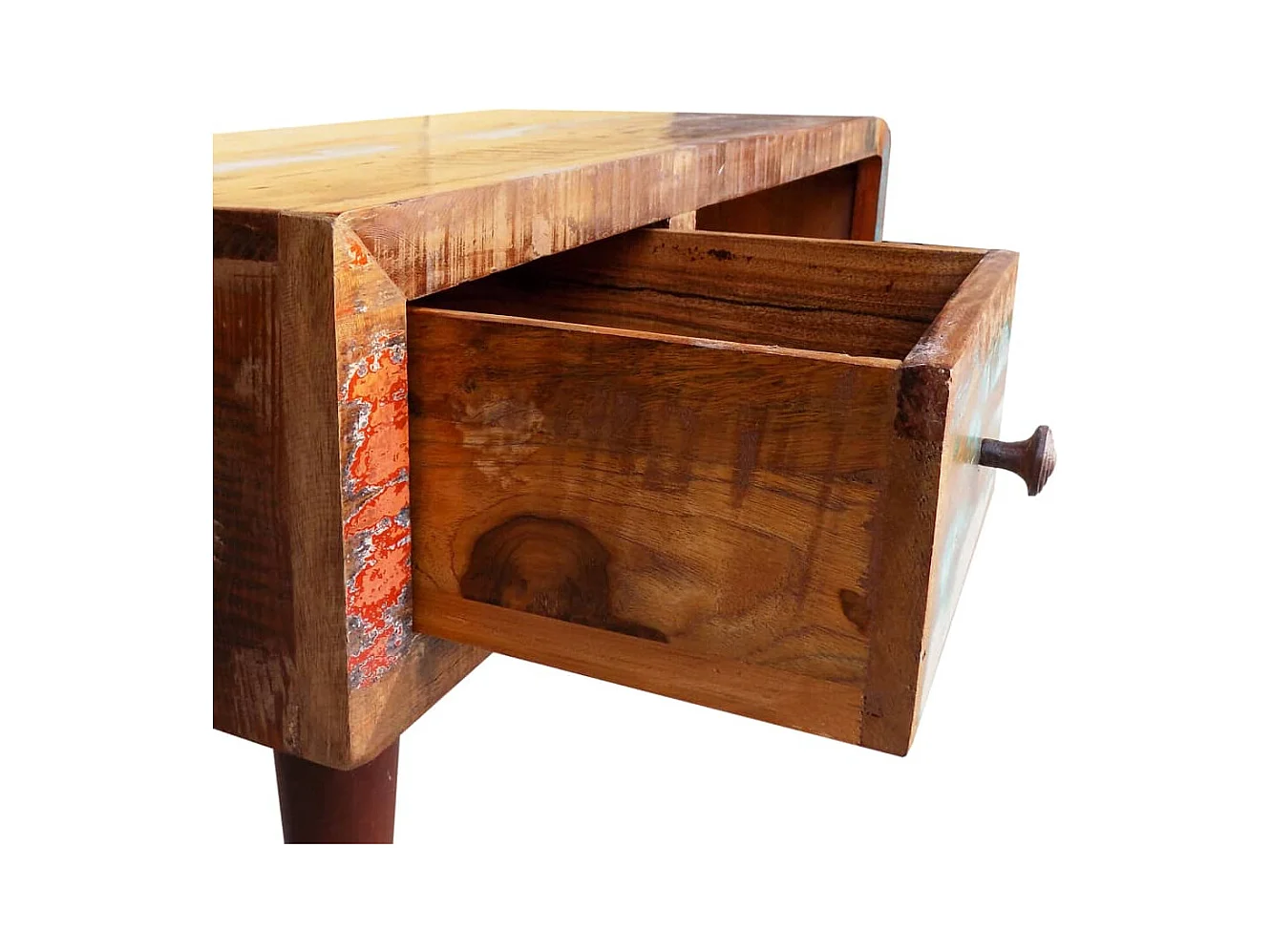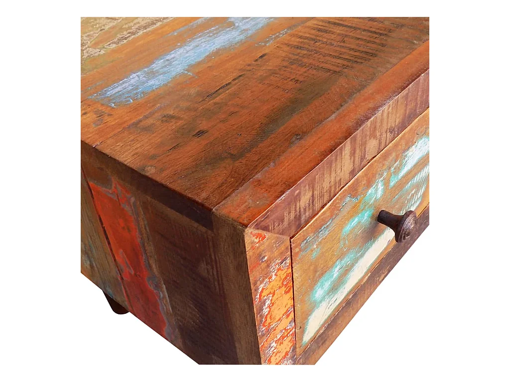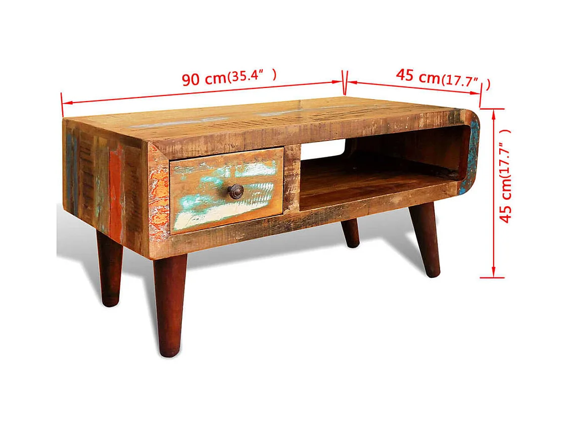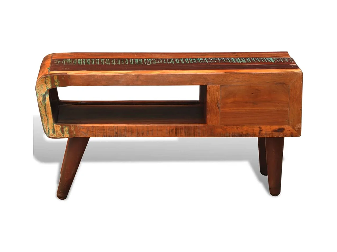 Salontafel met 1 gewelfde rand en 1 lade gerecycled hout