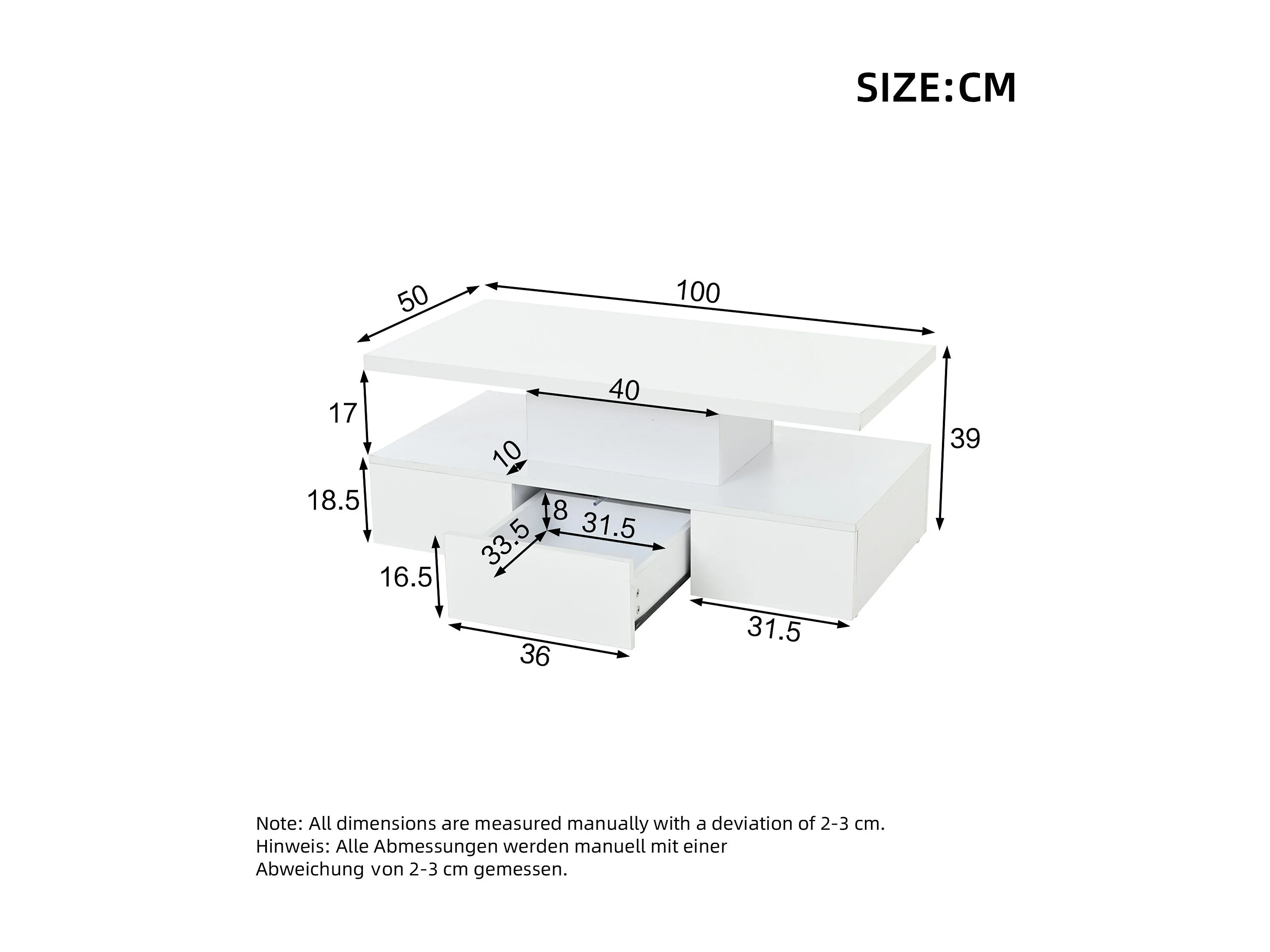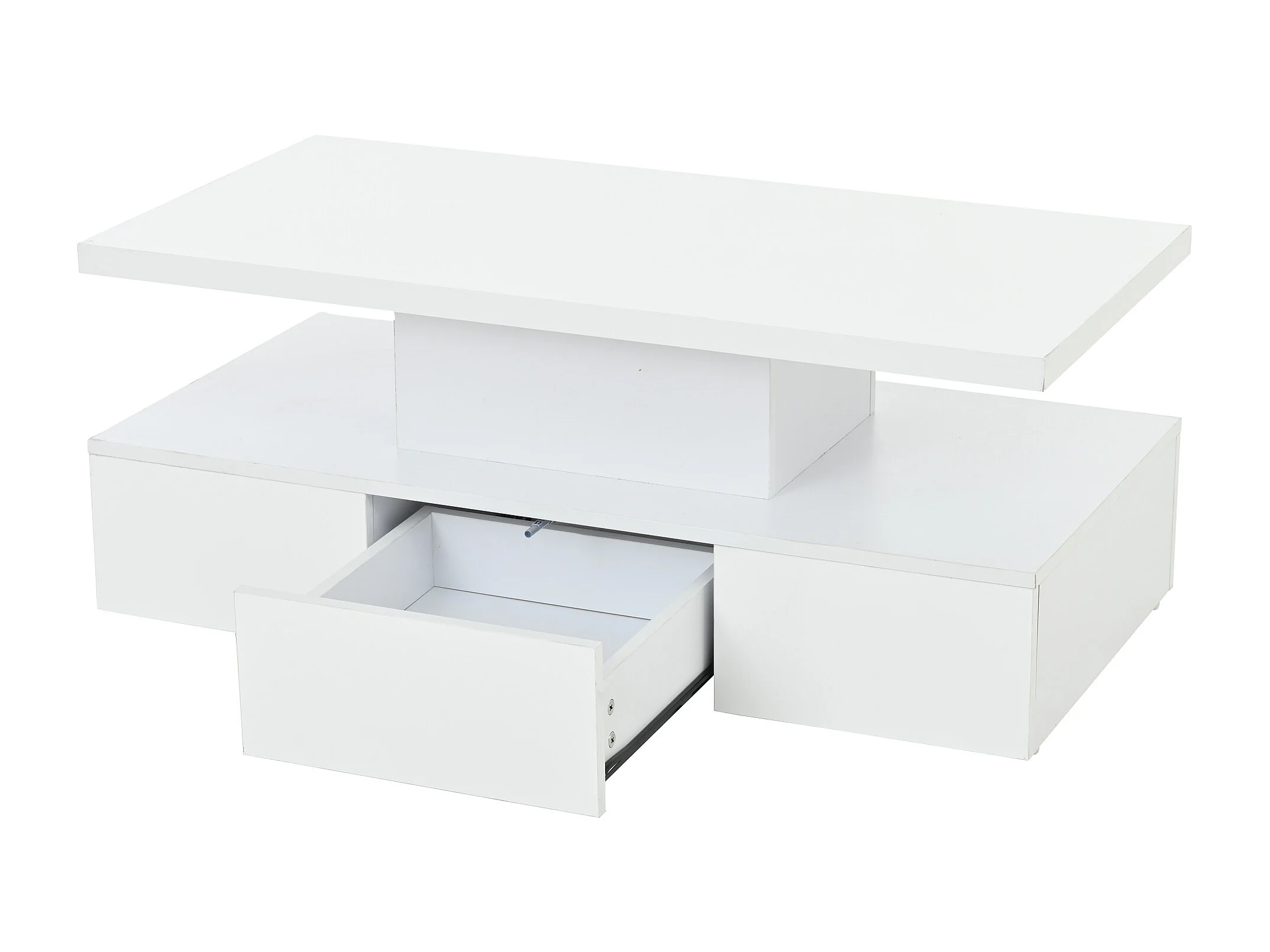 Salontafel met 2 lagen, 16 kleuren, schuifladen en displayplank, wit