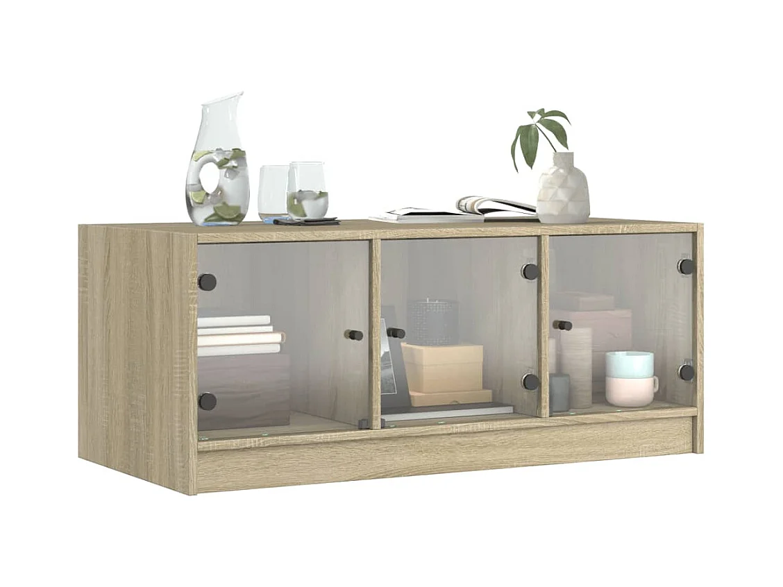 Salontafel met glazen deuren 102x50x42 cm sonoma eikenkleurig