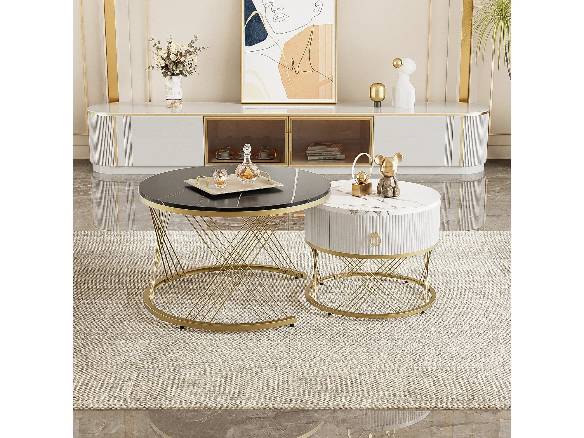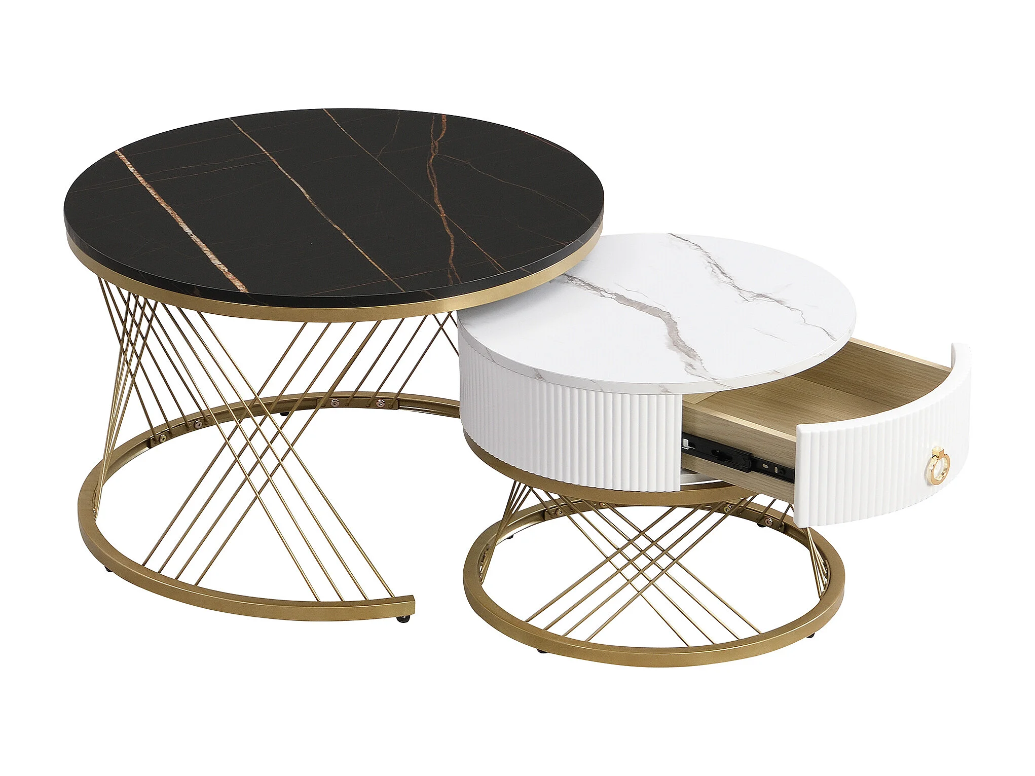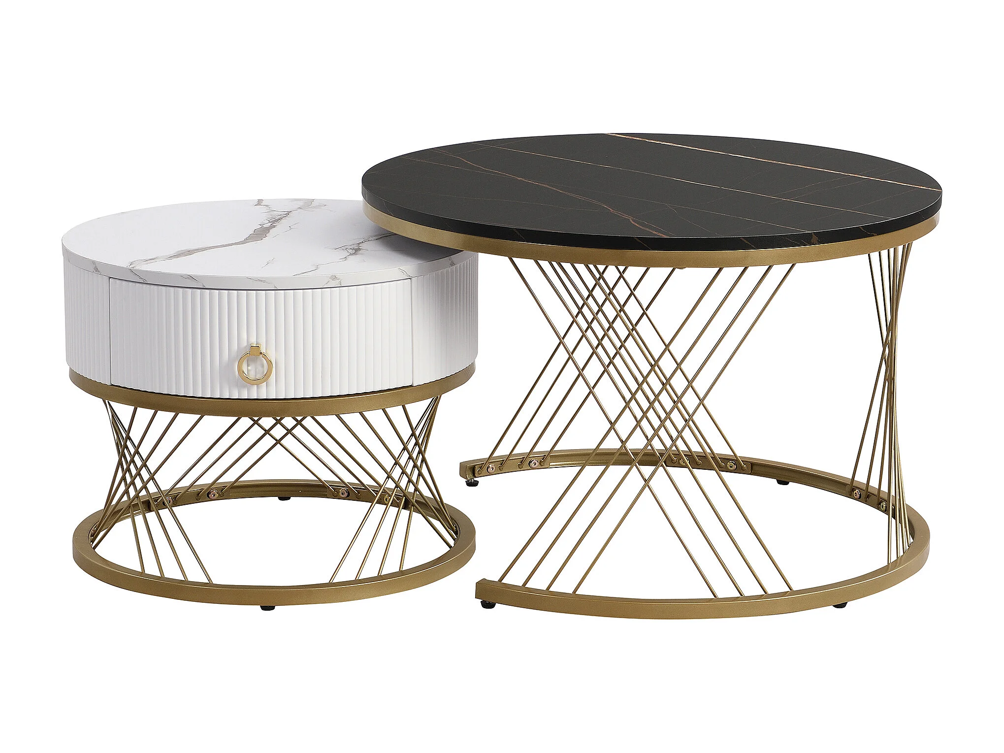 Salontafel met lade - Marmerlook blad - Metaal en MDF-hout - Wit