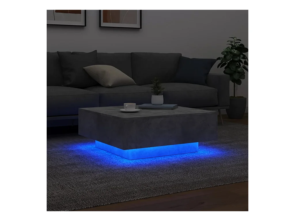 Salontafel met ledverlichting, betongrijs, 80x80x31 cm