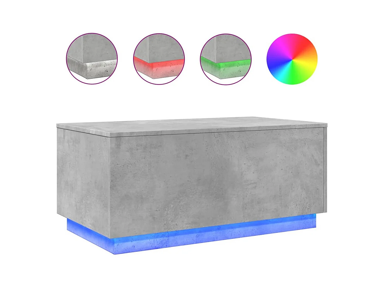 Salontafel met ledverlichting, betongrijs, 90x50x40 cm