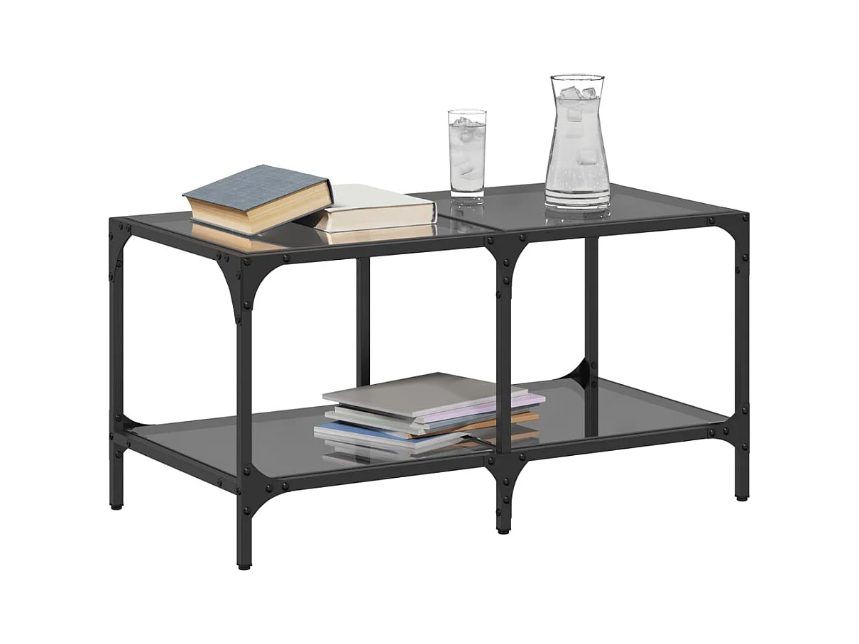 Salontafel met zwart glazen blad 78,5x40x40 cm staal