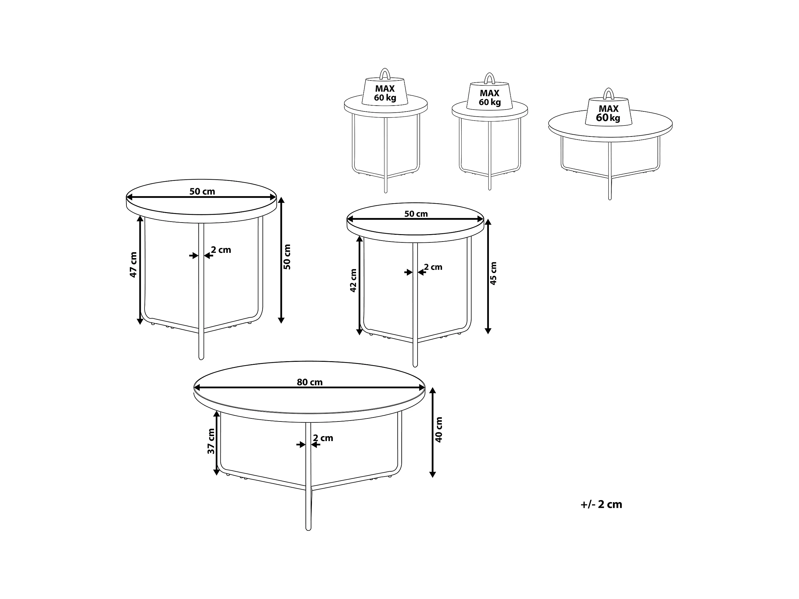 Set van 2 artistieke in elkaar passende salontafels (70/50cm) met stevige poten
