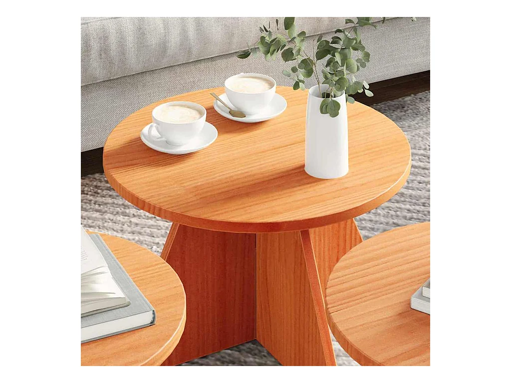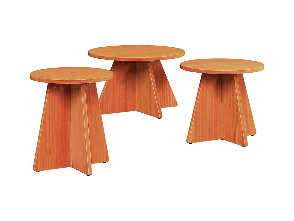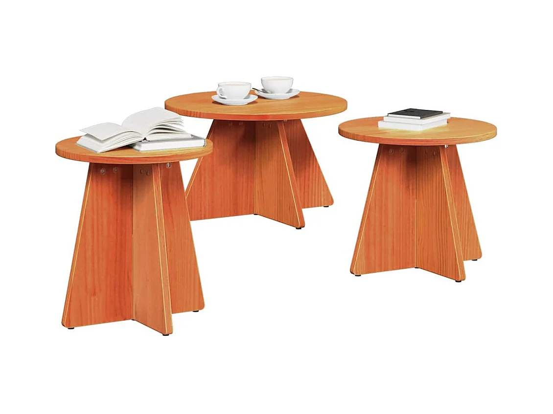 Salontafel Set van 3 | Woonkamertafel | Bijzettafel Wasbruin 49 x 49 x 30 cm Massief grenenhout