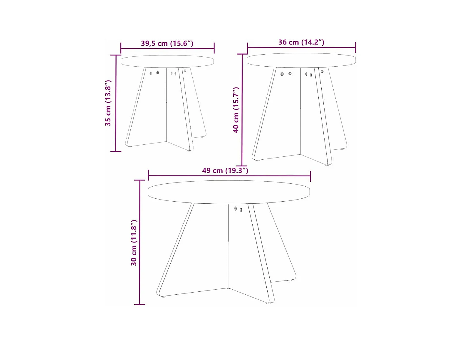 Salontafel Set van 3 | Woonkamertafel | Bijzettafel Naturel 49 x 49 x 30 cm Massief grenenhout