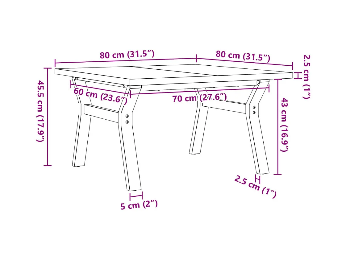 Salontafel Y-frame 80x80x45,5 cm grenenhout en staal