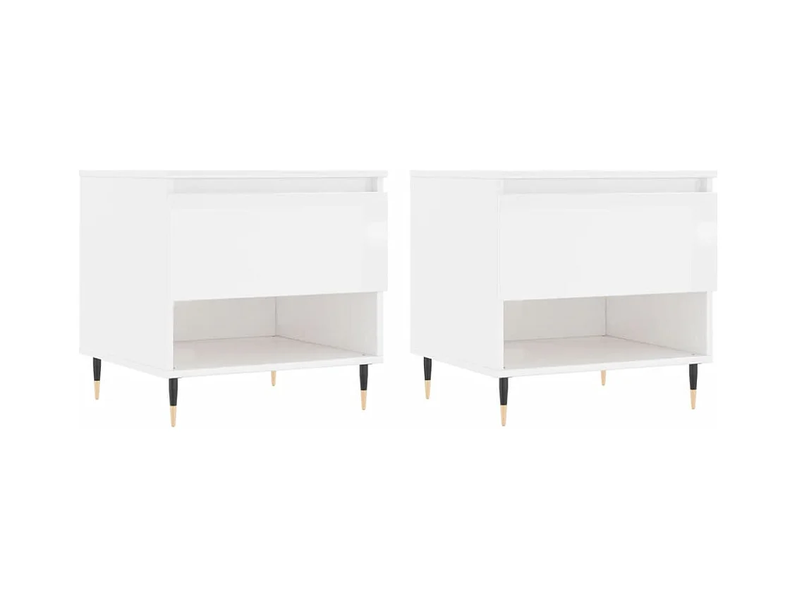 Salontafels 2 stuks wit hoogglans 50x46x50cm bewerkt hout