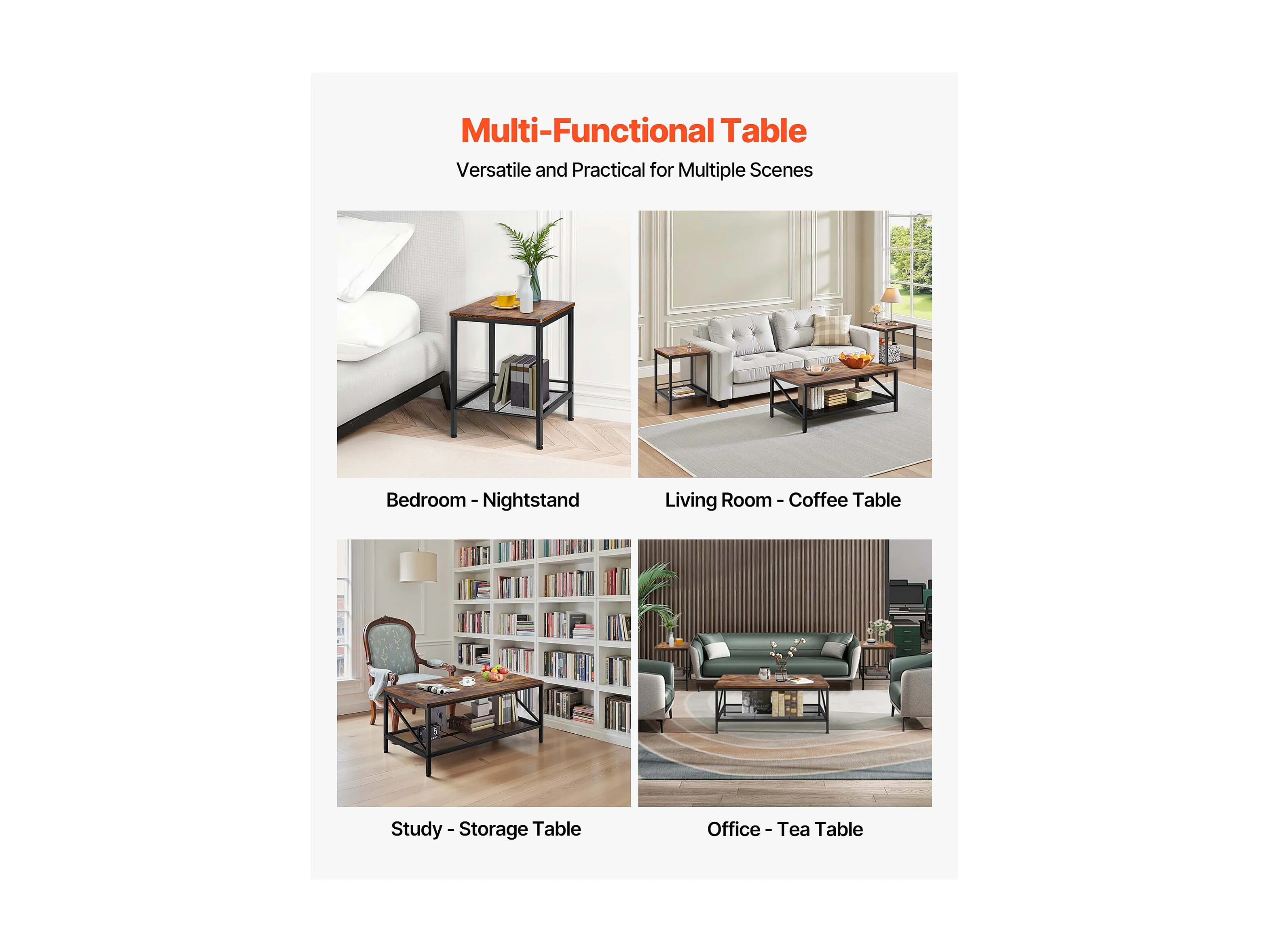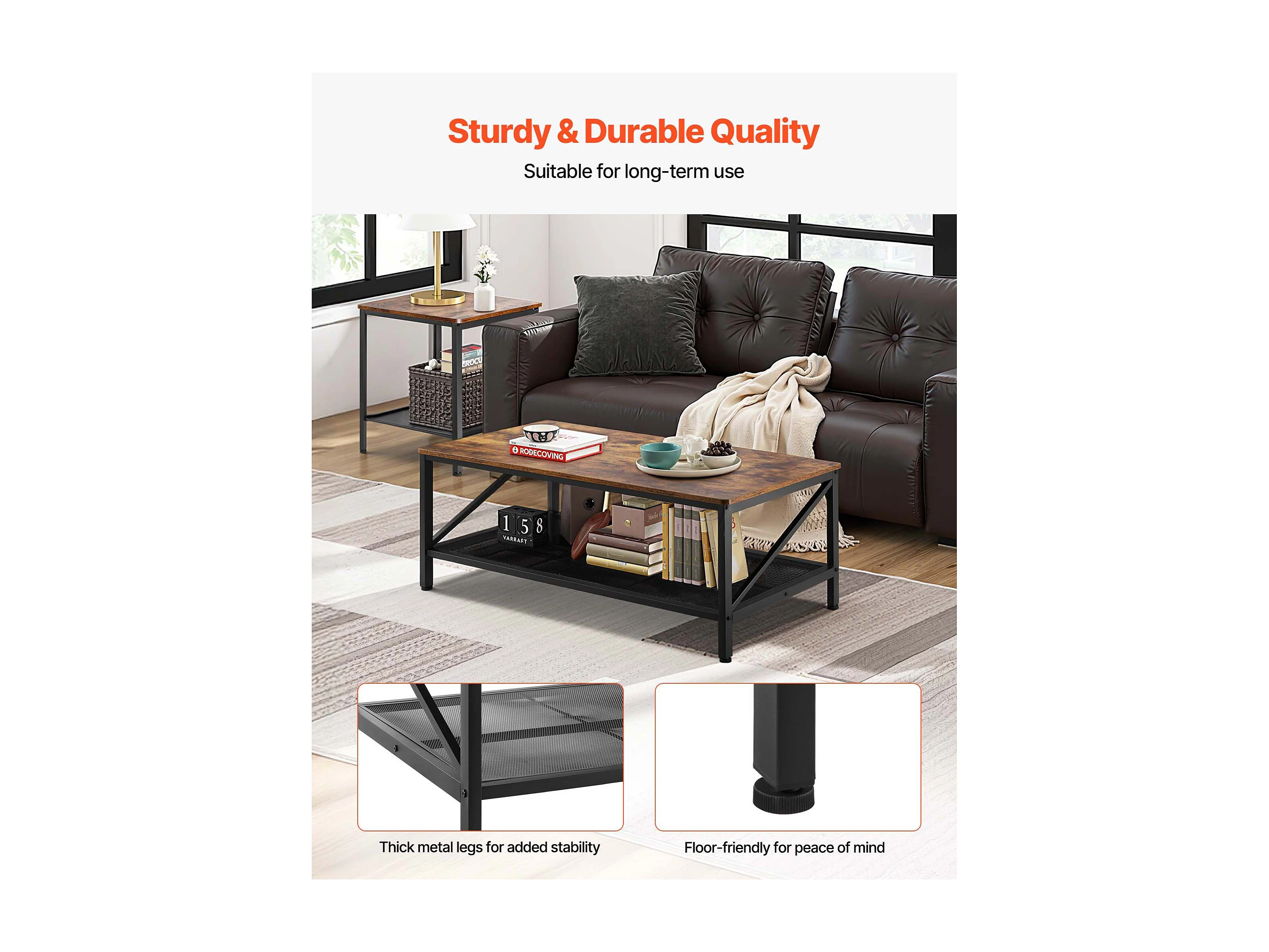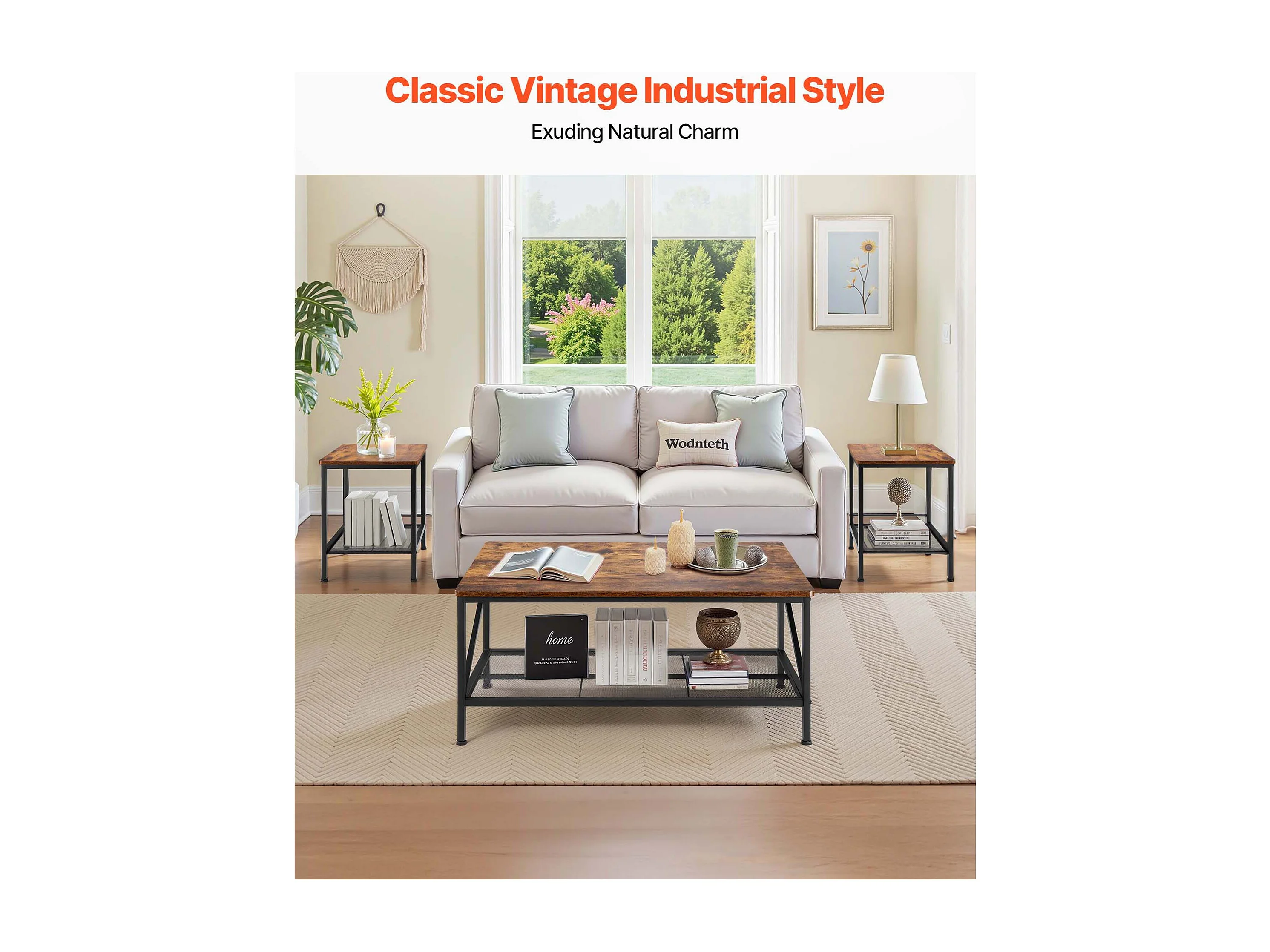 Salontafels SucceBuy, Set van 3, Industriële Salontafel van 105 x 60 x 46 cm, met Metalen Poten, Meubel voor Kantoor, Woonkamer en Appartement