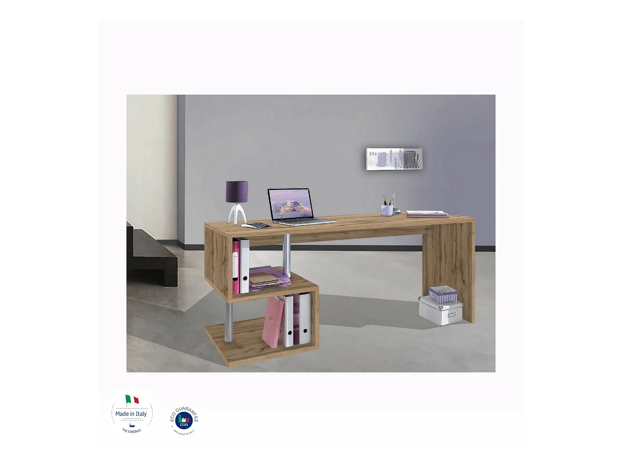 Samuel bureau, Lineair pc-bureau, Multifunctionele kantoortafel, Ruimtebesparend bureau met meerdere posities, 100% gemaakt in Italië, 180x60h78 cm, Eiken