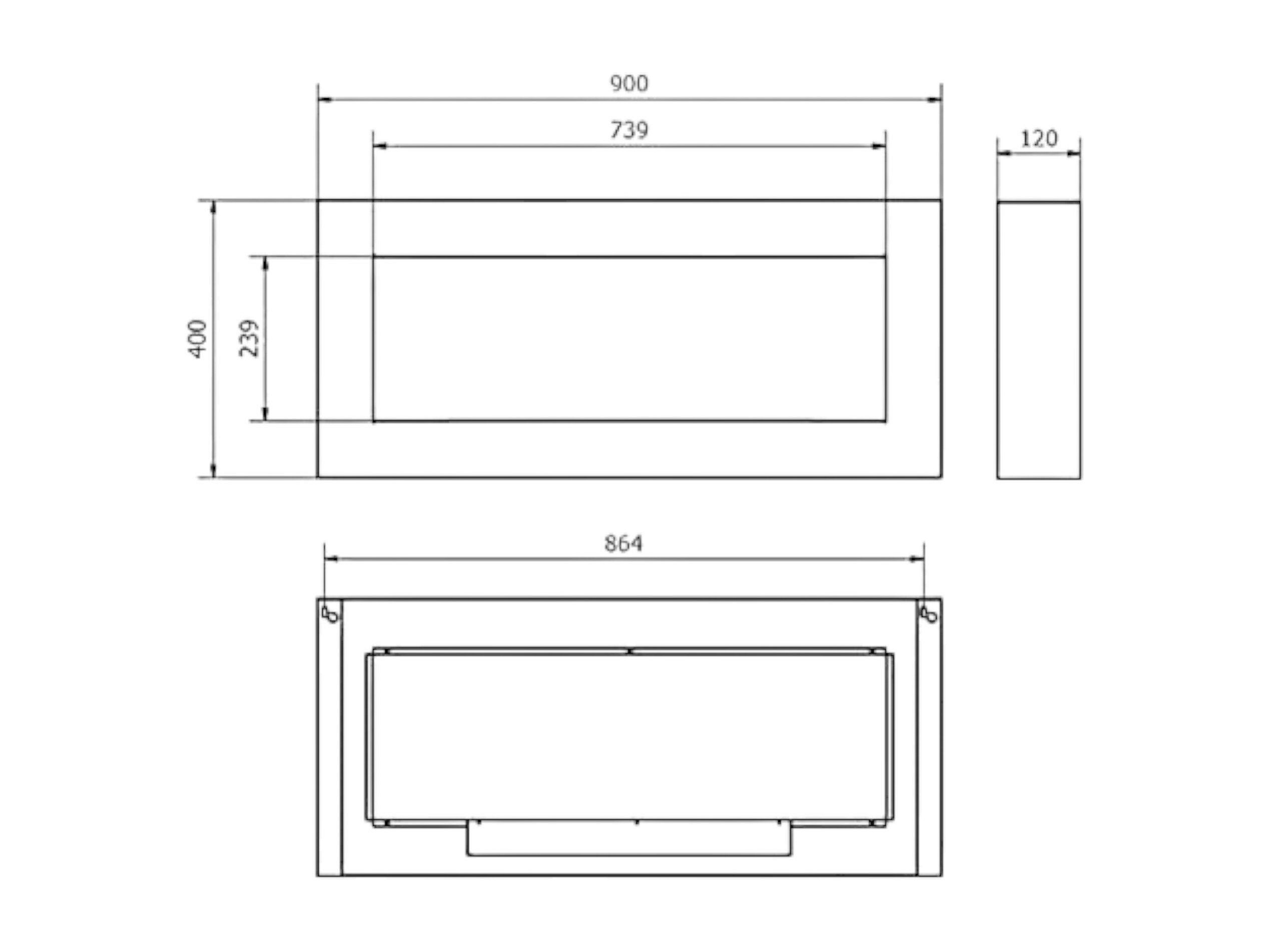 Sangay bio-ethanol haard, Ecologische haard, Rookloze haard, Ethanol verwarming, Made in Italy, 12x90 h40 cm, Zwart