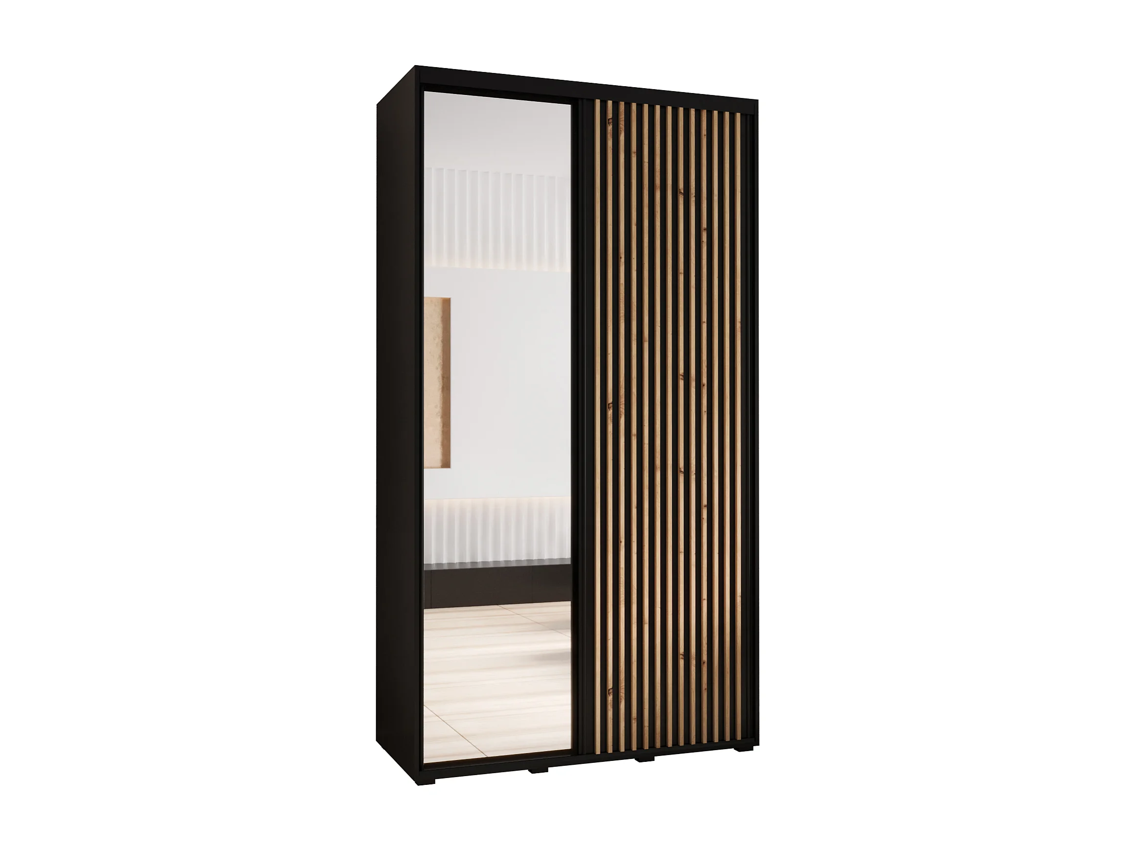 SAPPORO 2 KLEDINGKAST MET SCHUIFDEUREN 205,2/140/45 2 deuren (zwart/zwart)