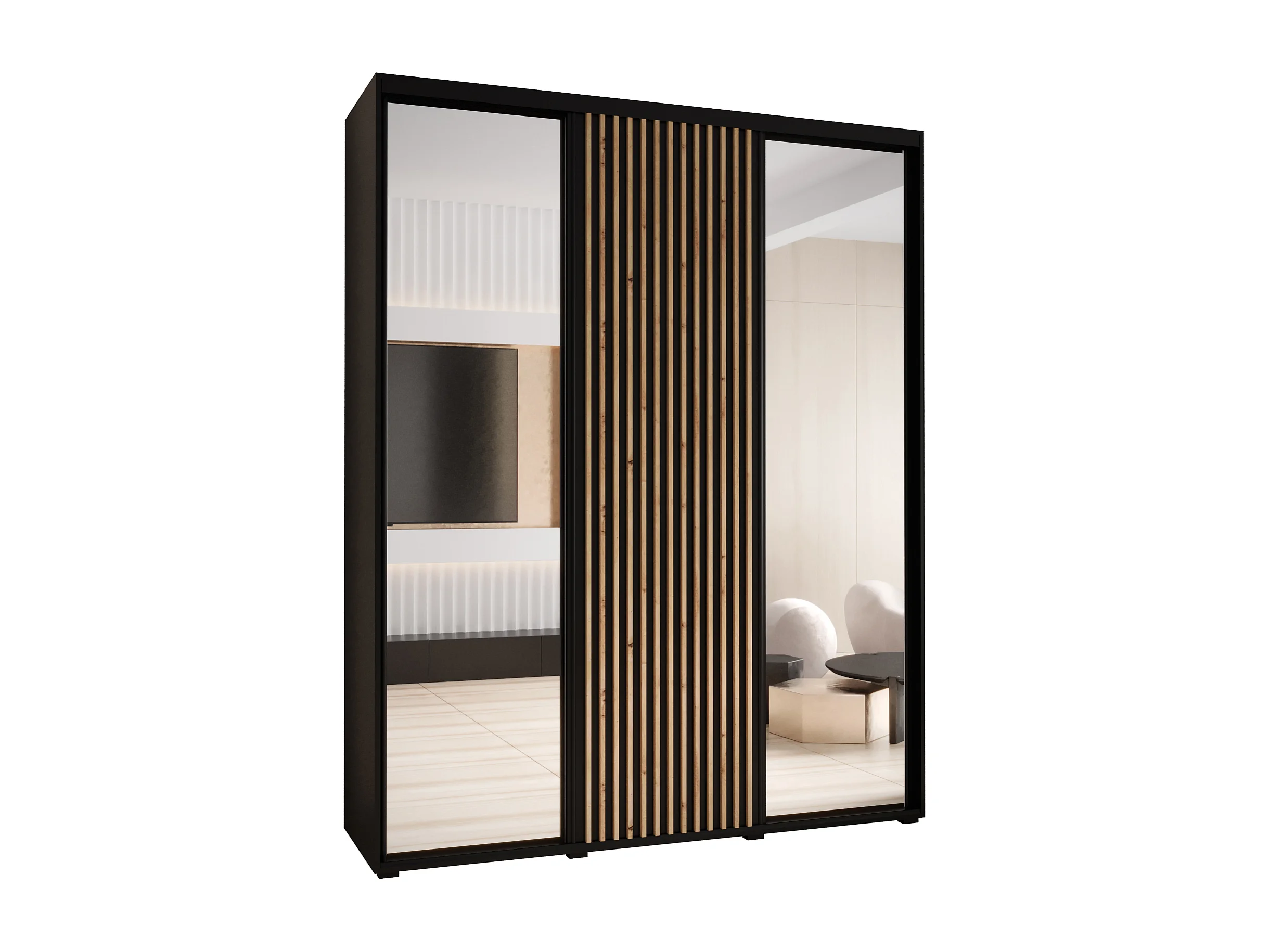 SAPPORO 2 KLEDINGKAST MET SCHUIFDEUREN 205,2/190/45 3 deuren (zwart/zwart)
