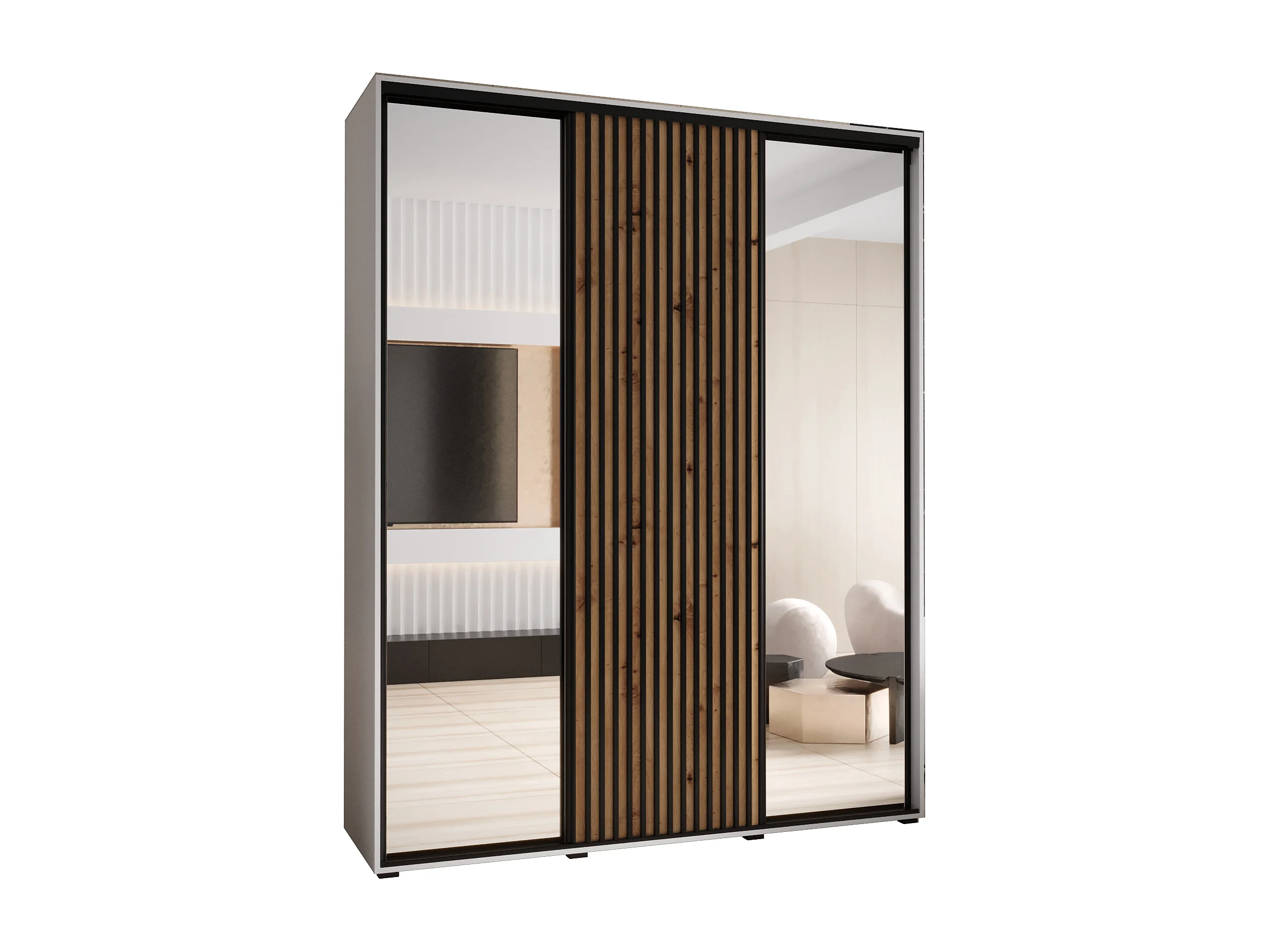 SAPPORO 2 KLEDINGKAST MET SCHUIFDEUREN 205,2/190/60 3 deuren (wit/artisan)