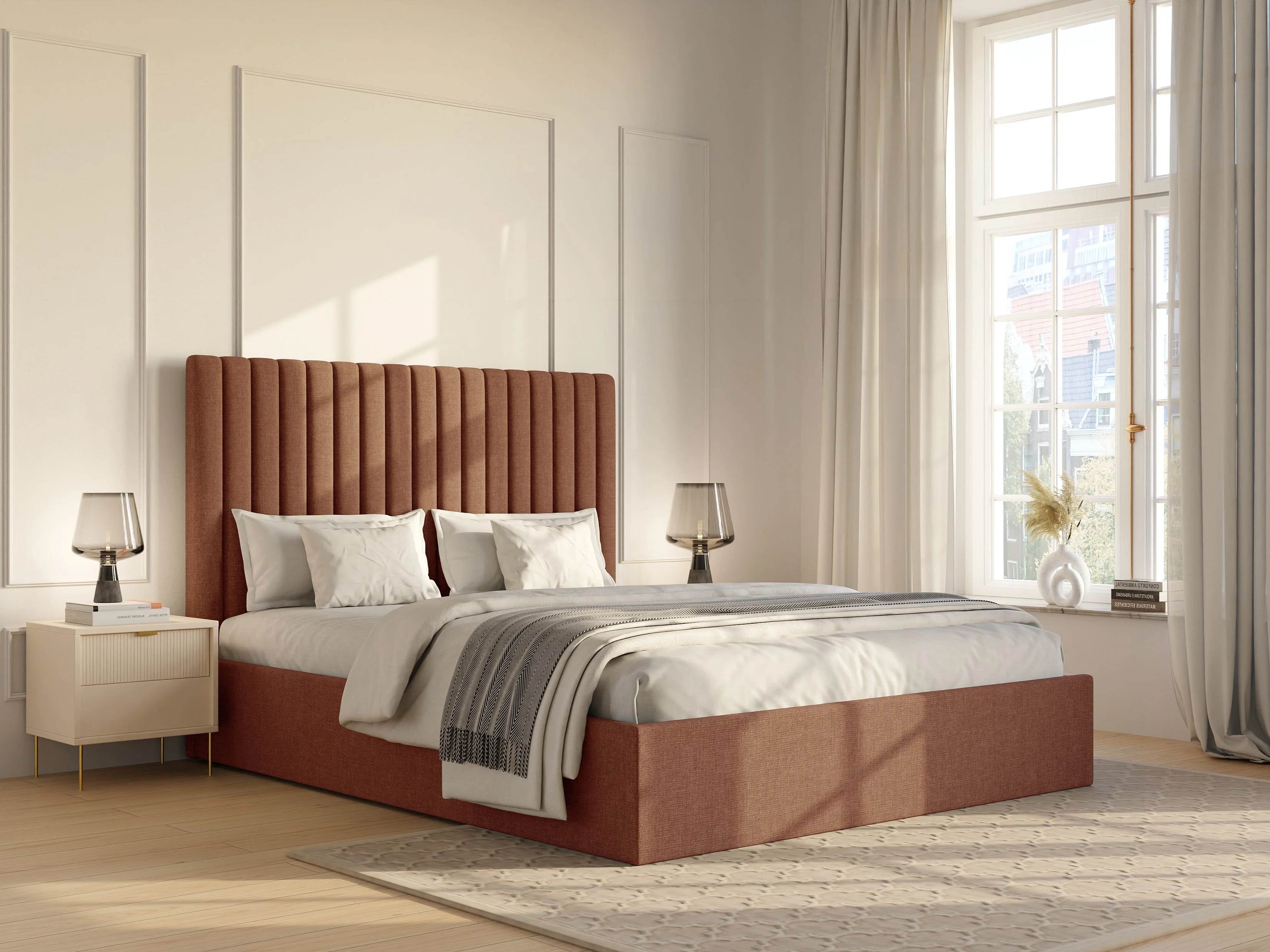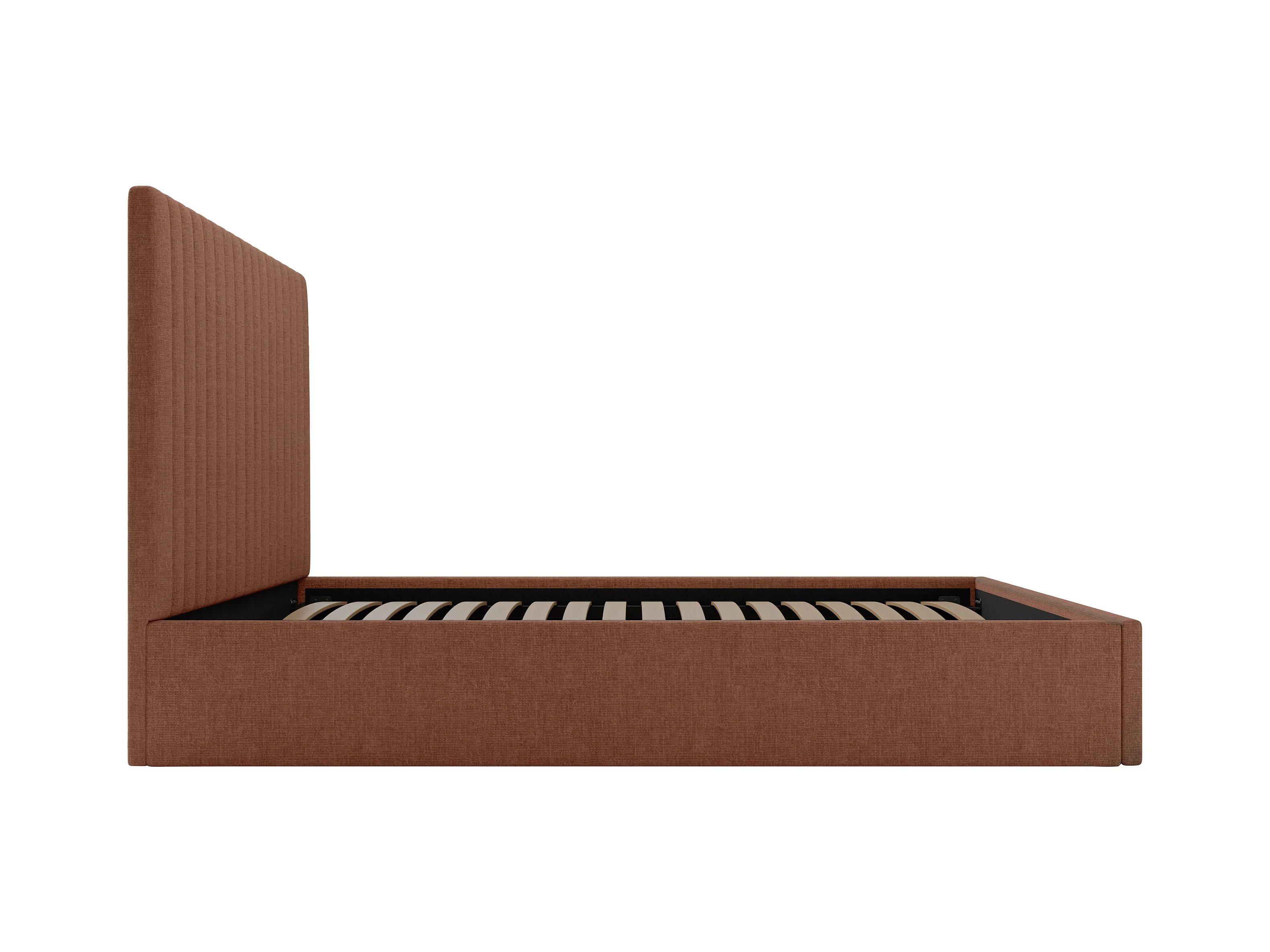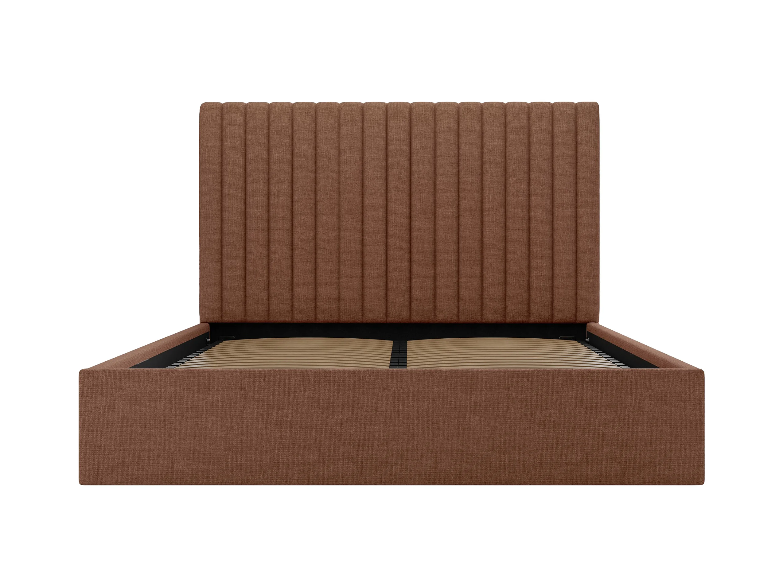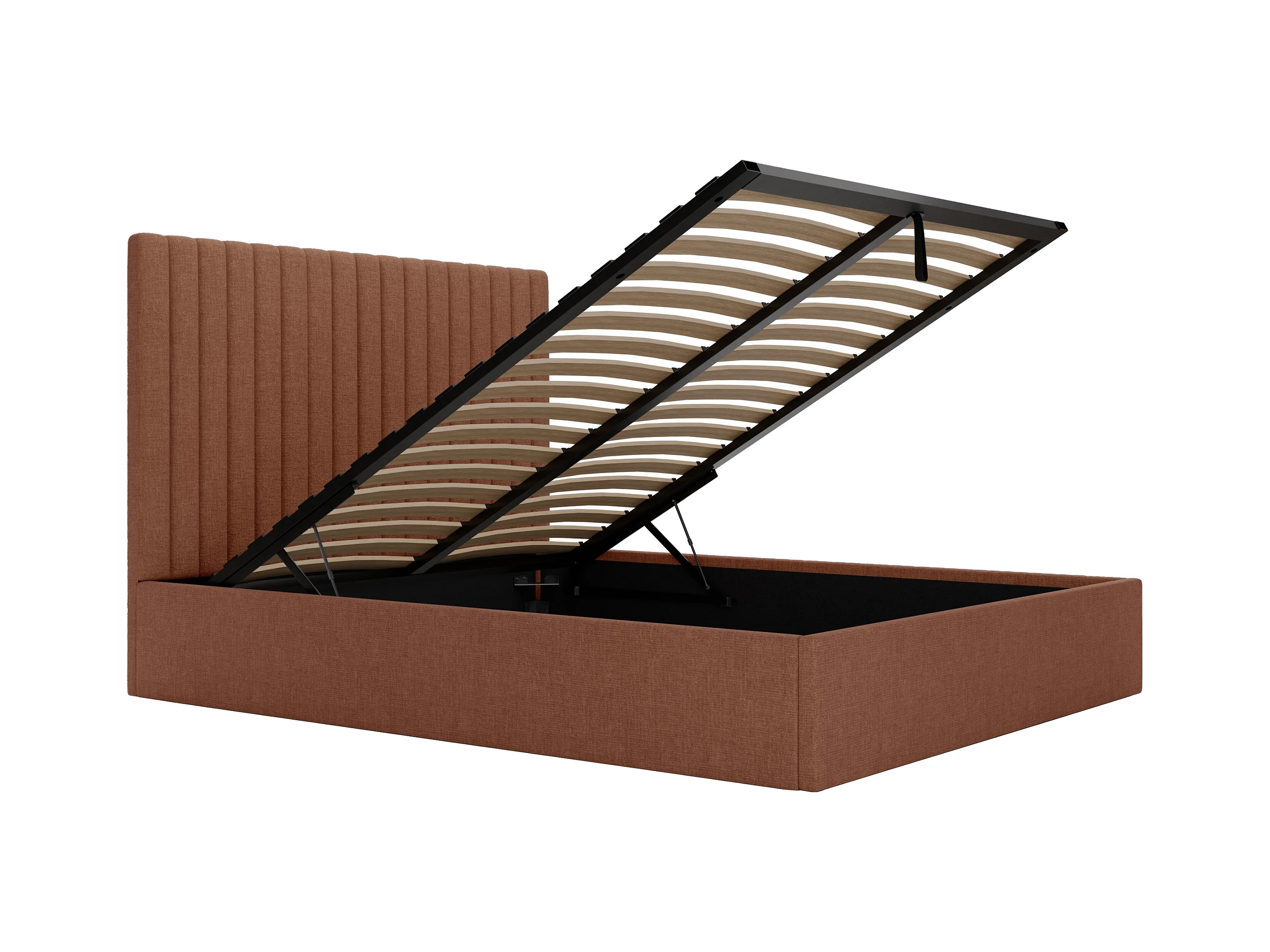 Bed met opbergruimte 180 x 200 cm met hoofdbord met verticale stiksels - Stof - Terracotta - SARAH II