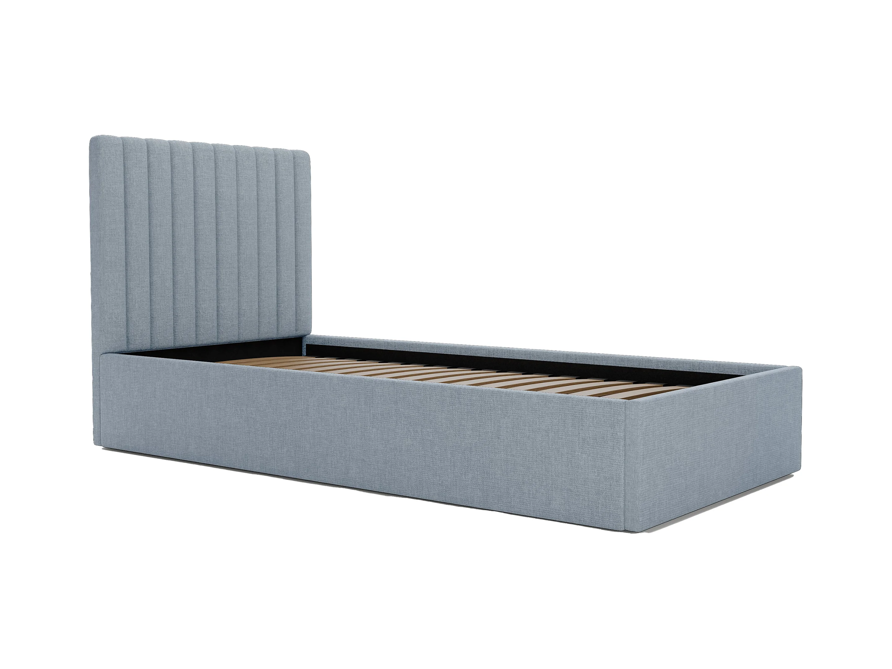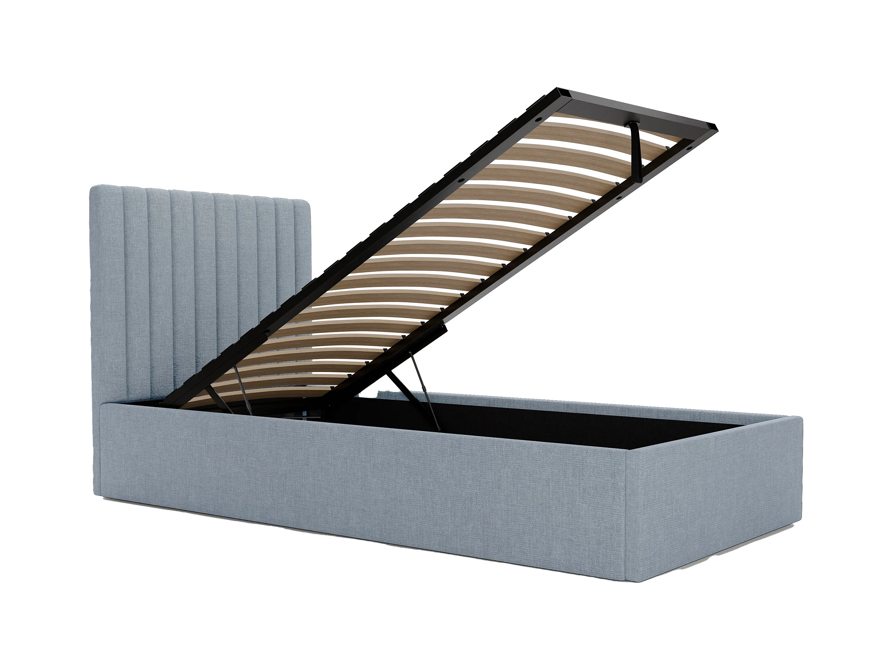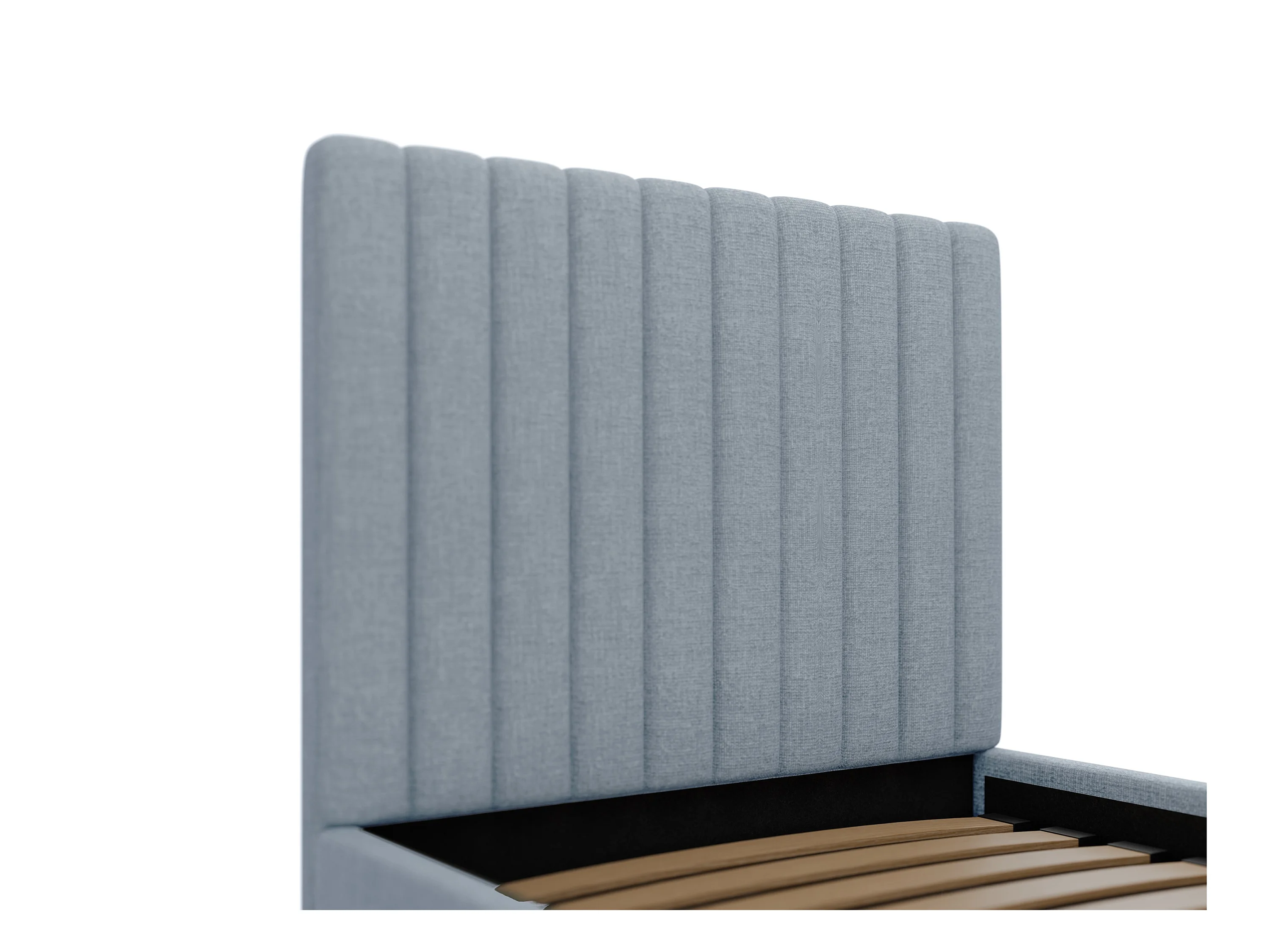 Bed met opbergruimte 90 x 190 cm met hoofdbord met verticale naden - Stof - Hemelsblauw - SARAH II