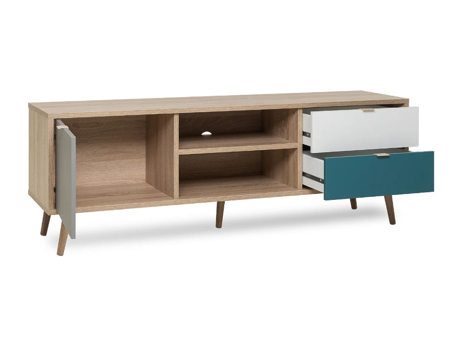 Scandinavisch TV-meubel 150cm PERAST Eiken Sonoma met Opbergruimte en Deur - Scandinavische Stijl