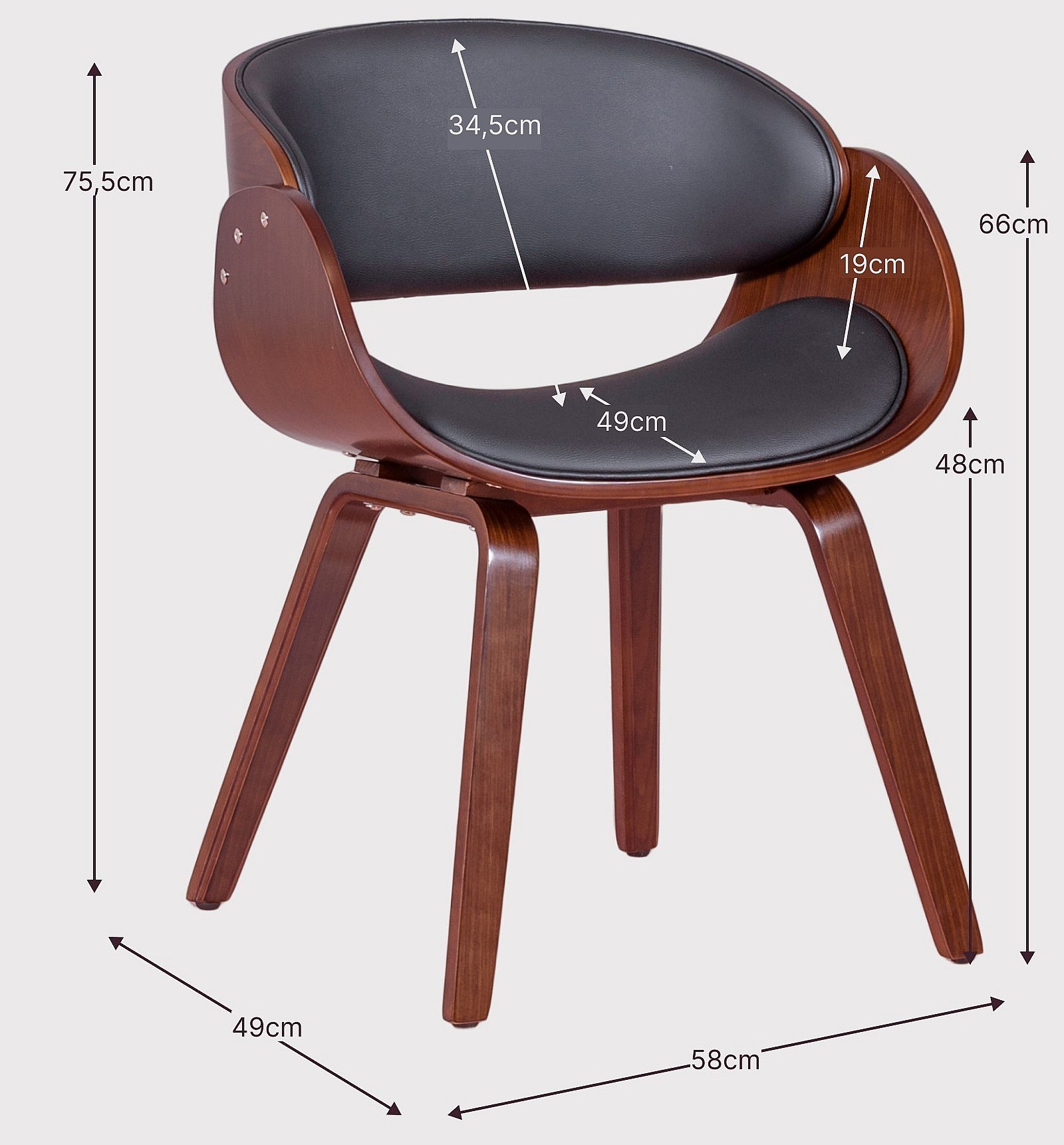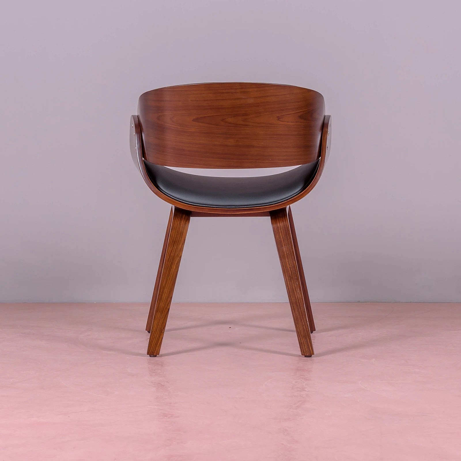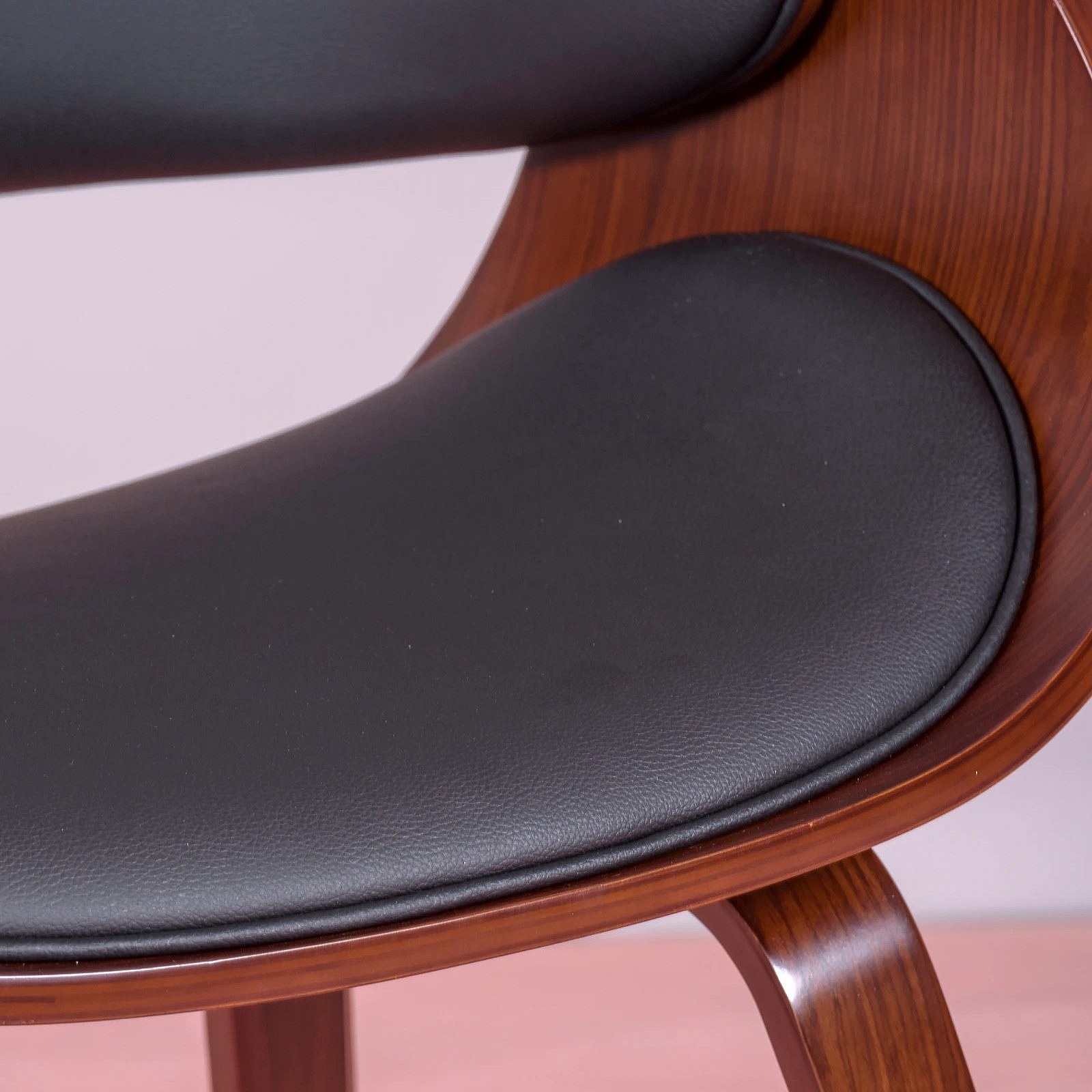 Scandinavische stoel met armleuningen in donker walnoothout en bekleed met kunstleer - Burrow S - Zwart