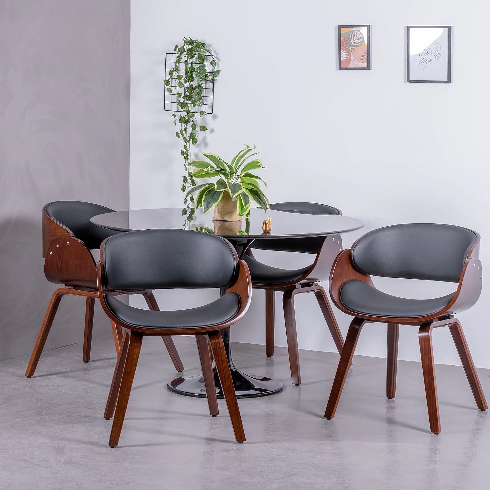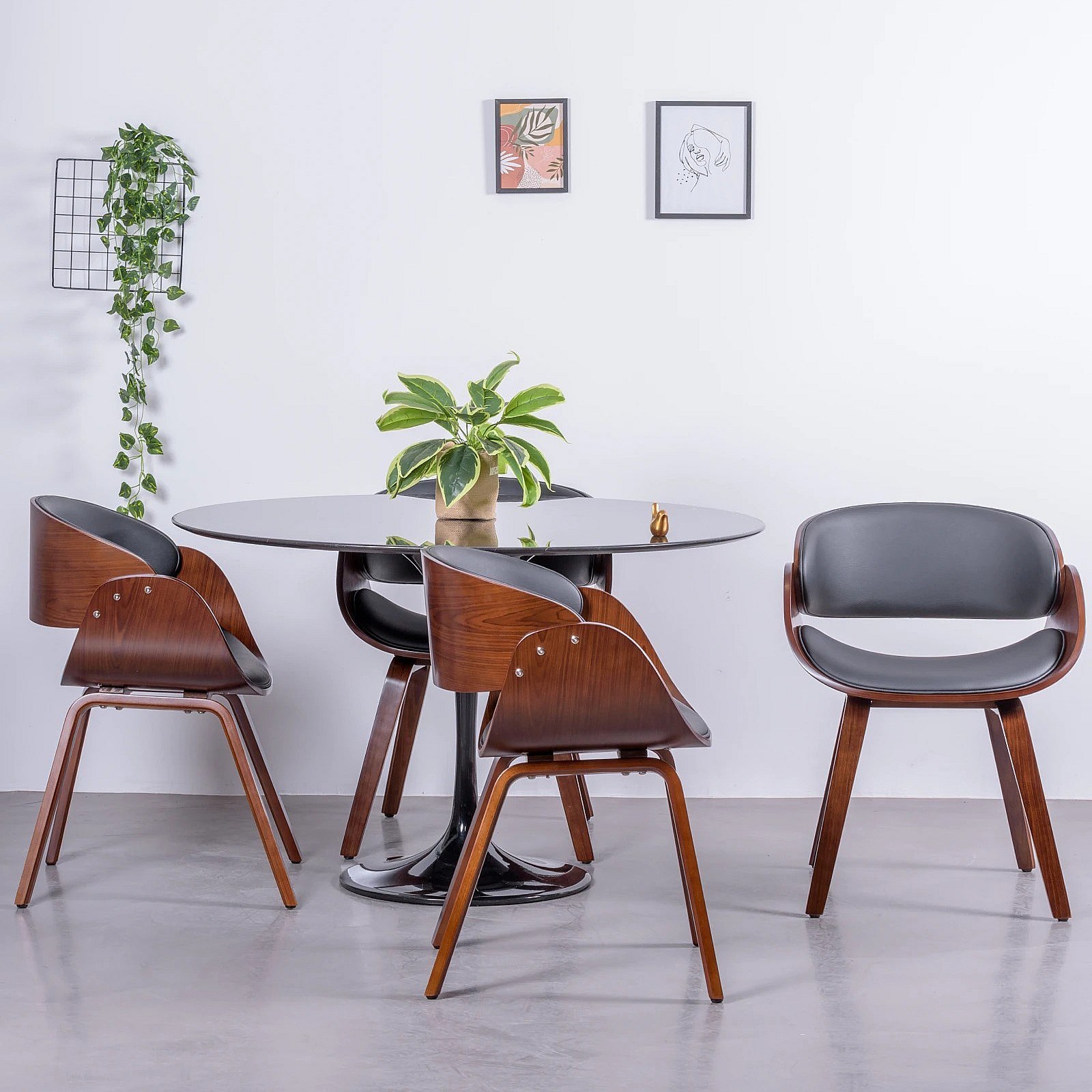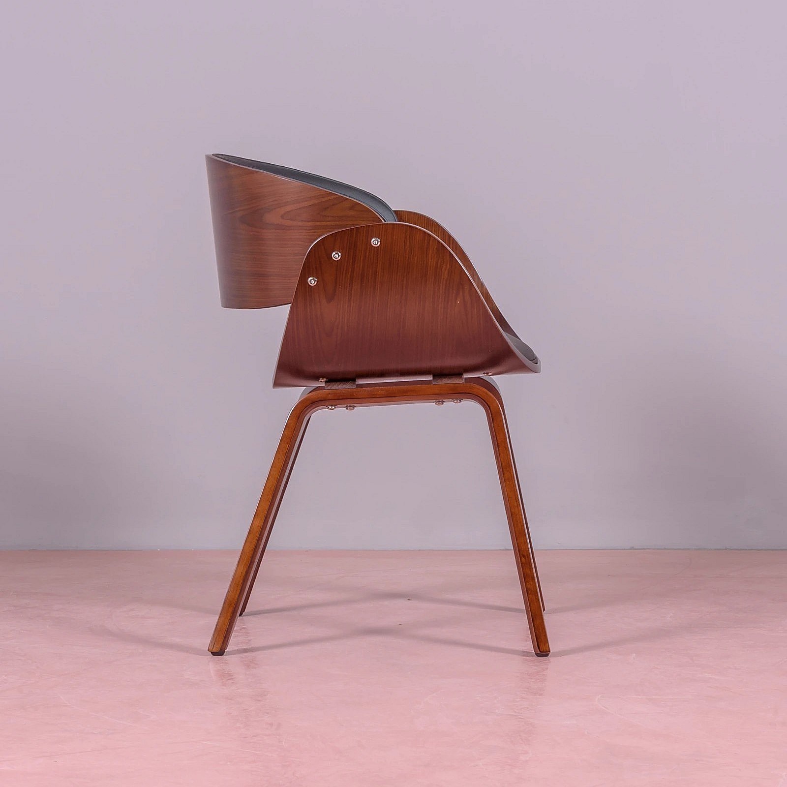 Scandinavische stoel met armleuningen in donker walnoothout en bekleed met kunstleer - Burrow S - Zwart