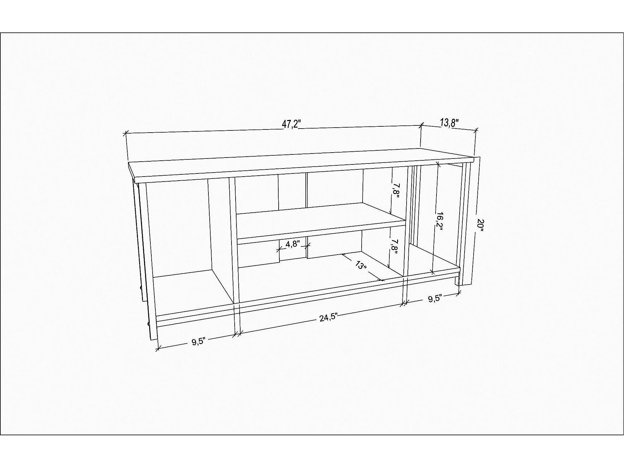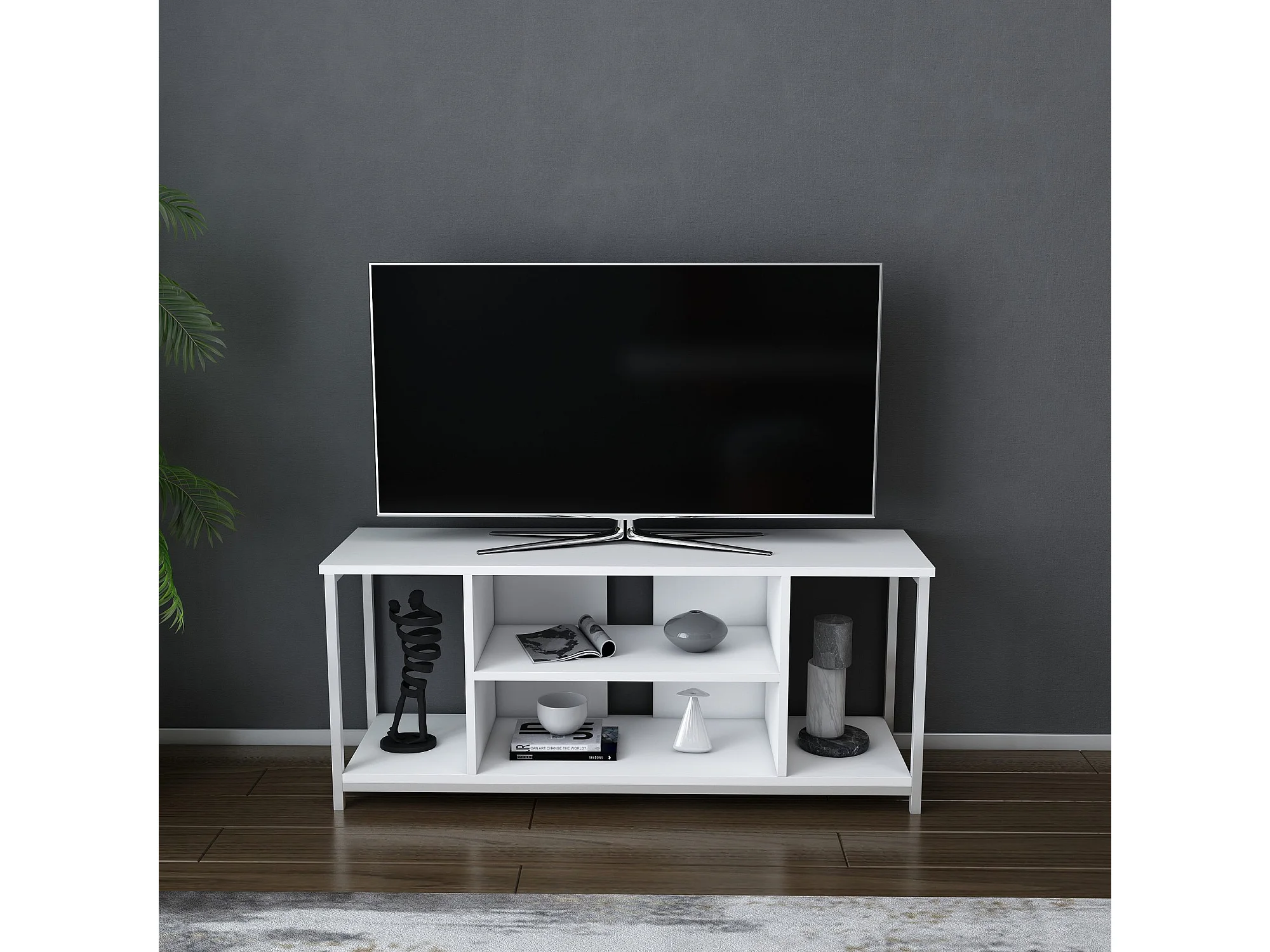 Scandinavische tv-standaard, wit, 120 x 35 x 50,8 cm | 100% melamine gecoate spaanplaat, 18 mm dik, metalen frame | Stijlvol en functioneel voor moderne woonkamers