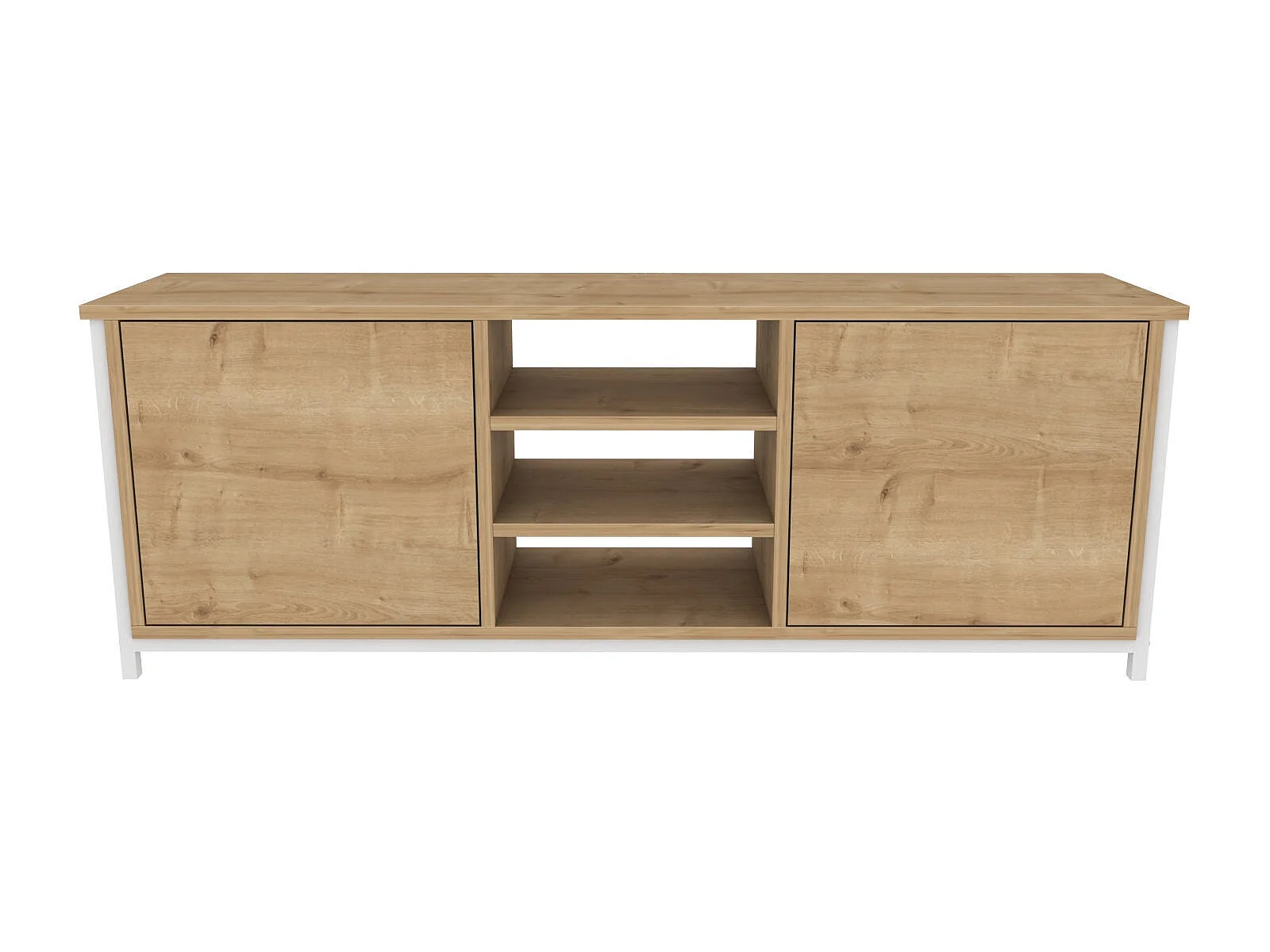 Scandinavische tv-standaard, wit en eiken, 140 x 35,3 x 50,8 cm | 100% melamine gecoate spaanplaat, 18 mm dik | Stijlvol en functioneel voor moderne woonkamers