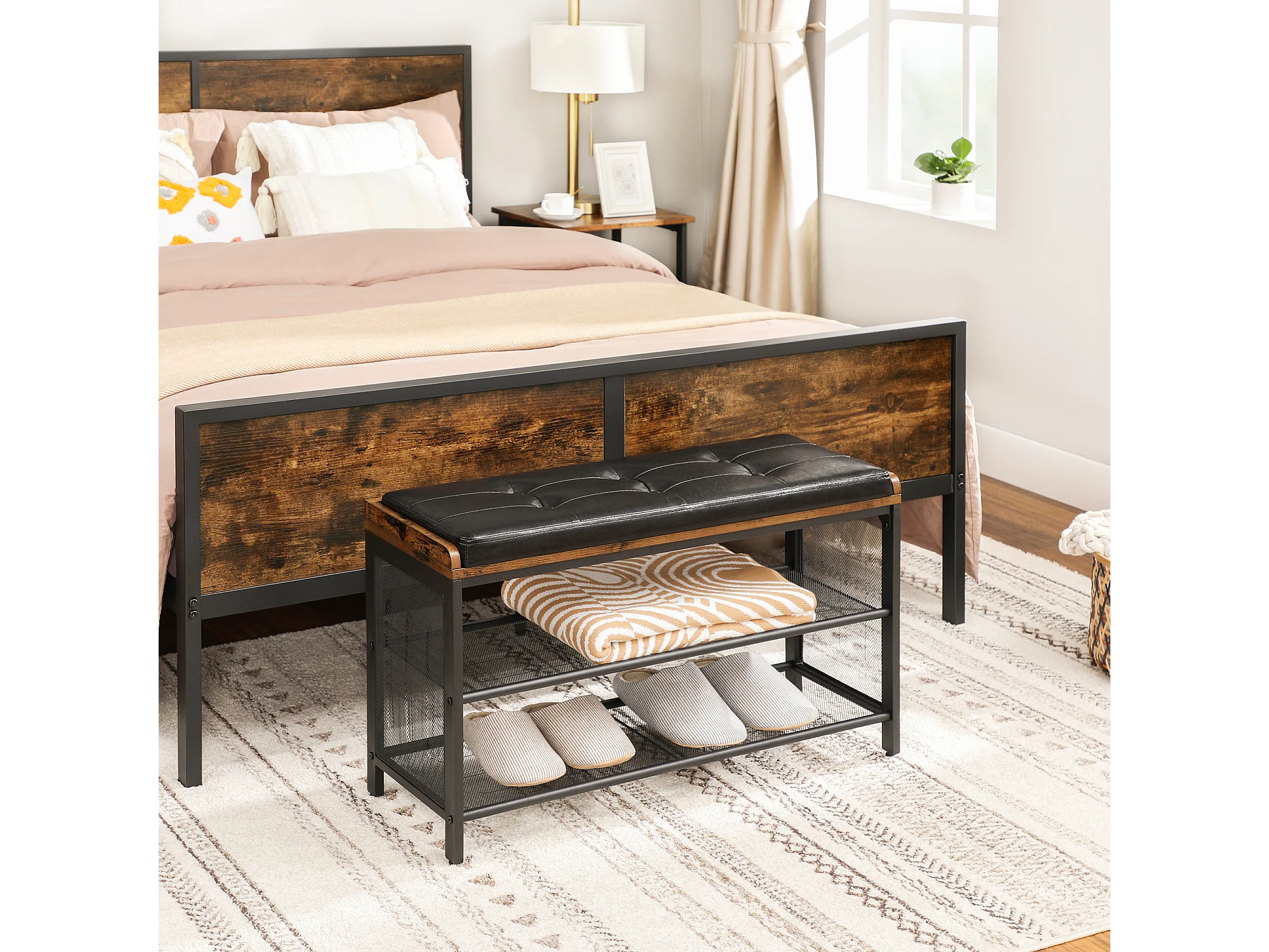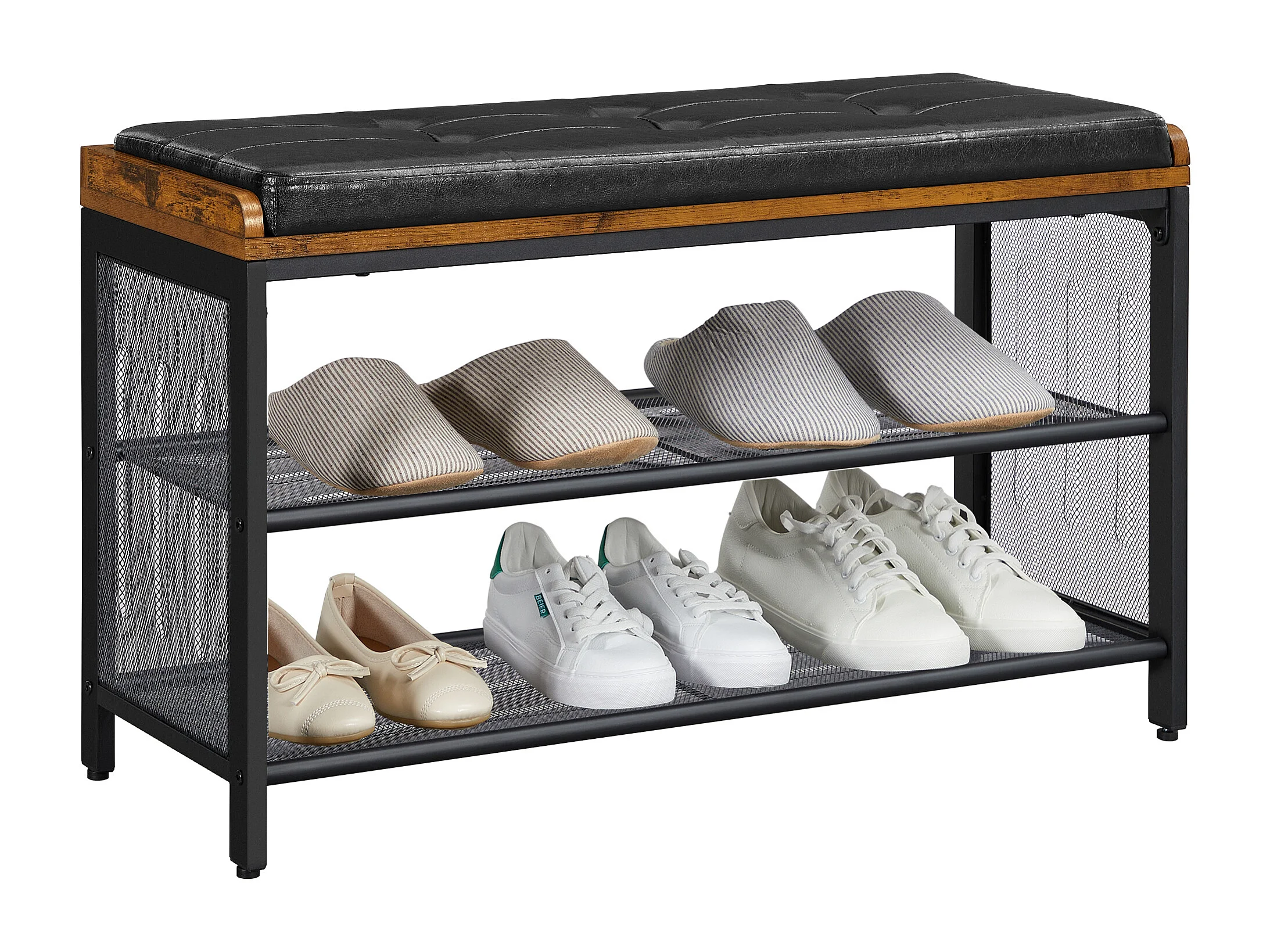 Schoenenbank 80x30x48 cm zwart Vintage bruin Copadion