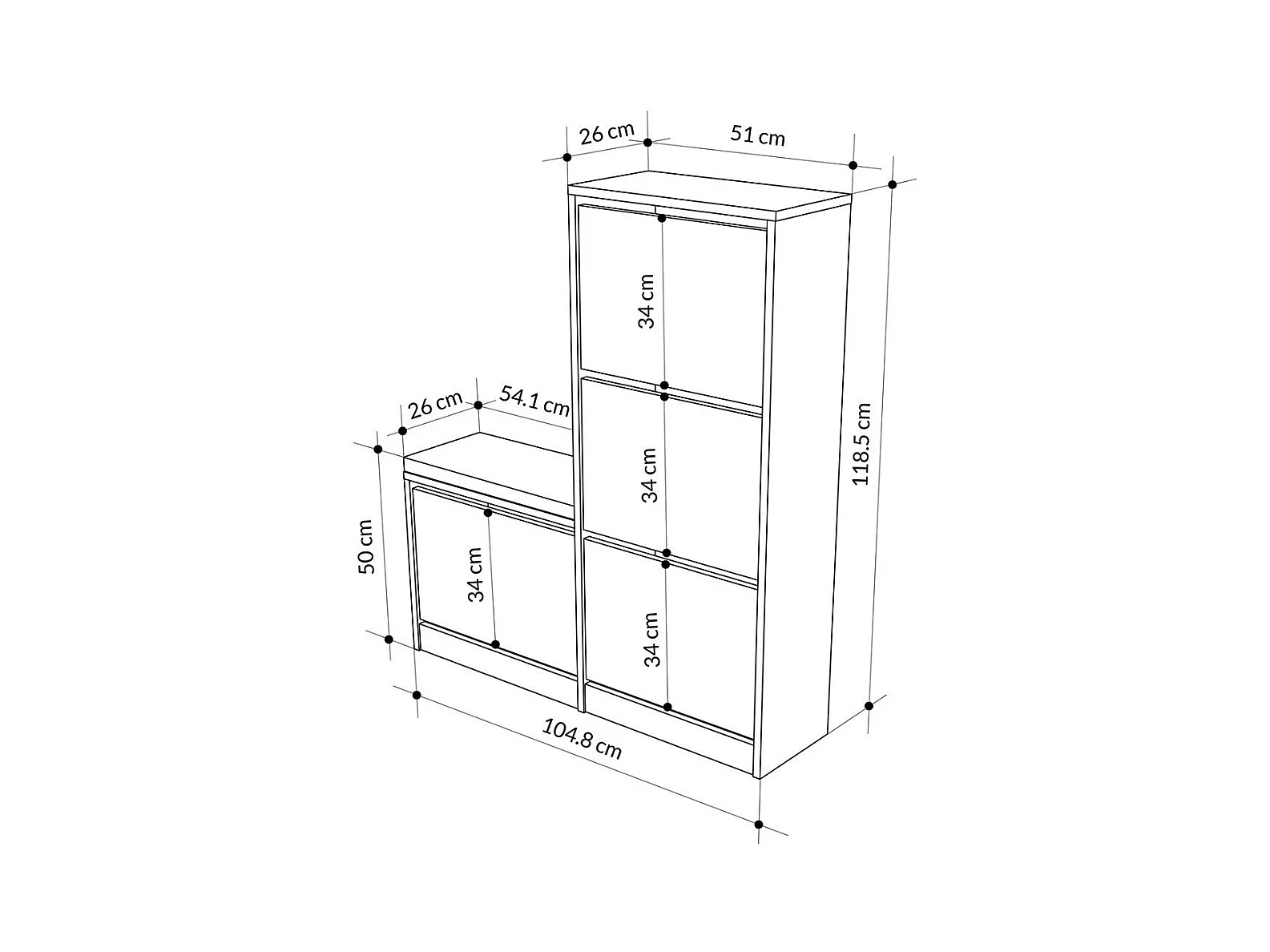 Schoenenkast met 6 compartimenten Satos - L50 cm