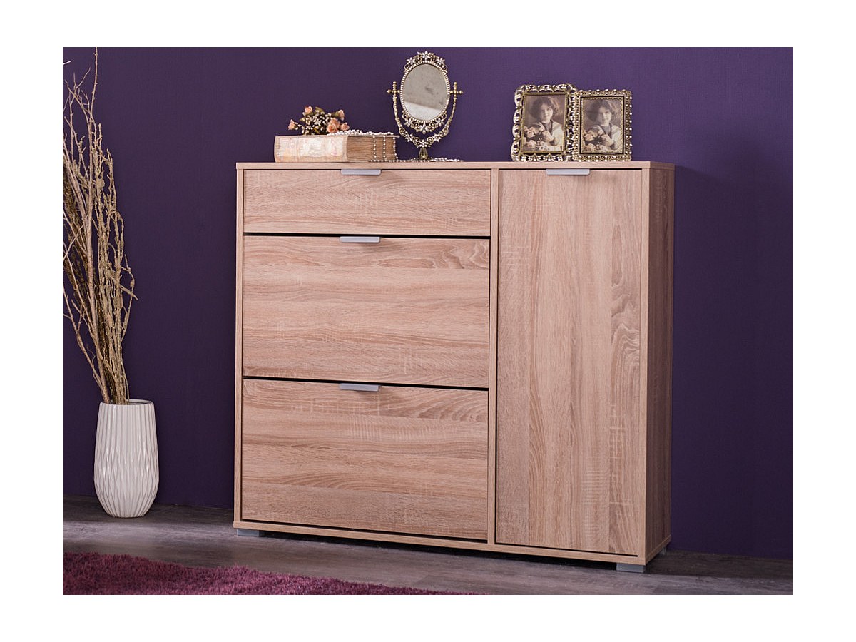 Schoenenkast ARIETTA - 2 vlakken, 1 deur en 1 lade - Kleur: eik