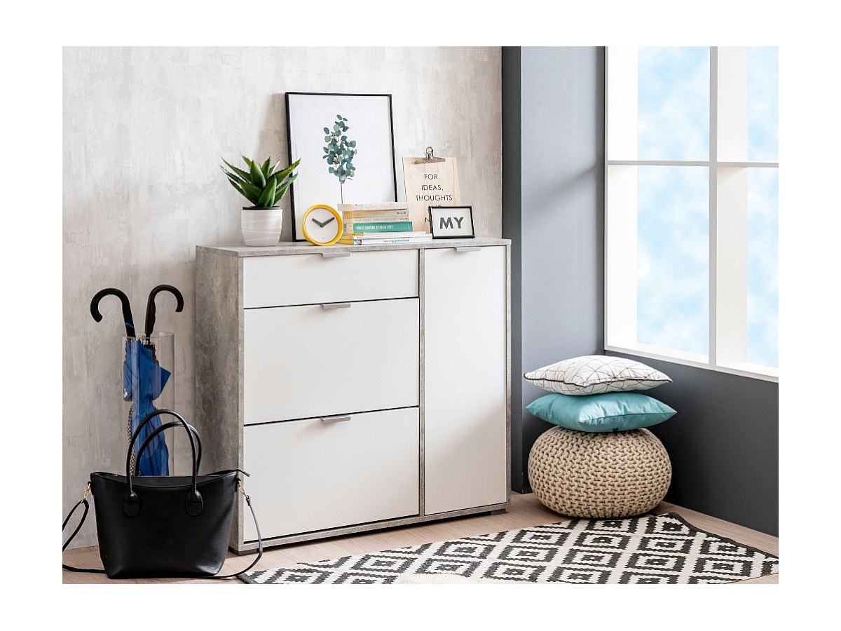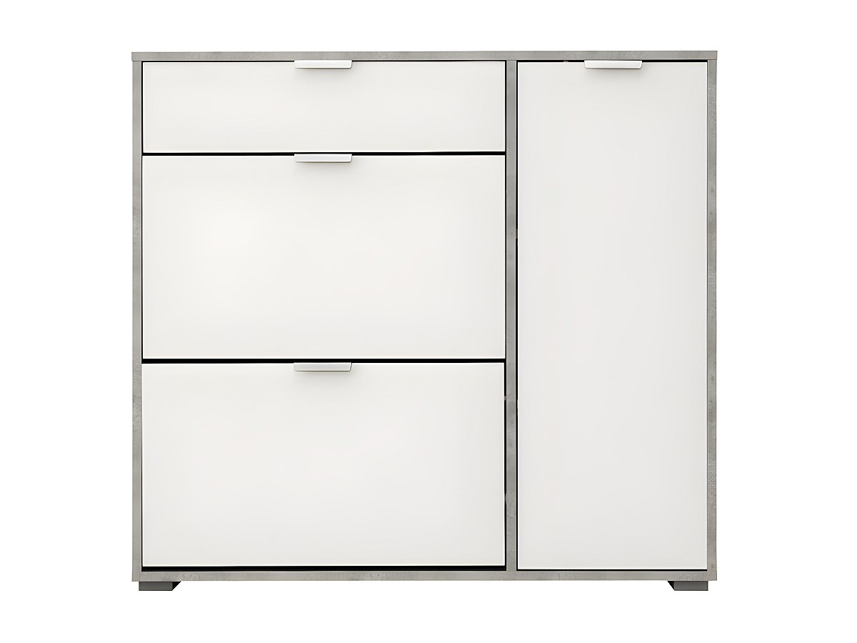 Schoenenkast ARIETTA - 2 vlakken, 1 deur en 1 lade - Kleur: wit & beton