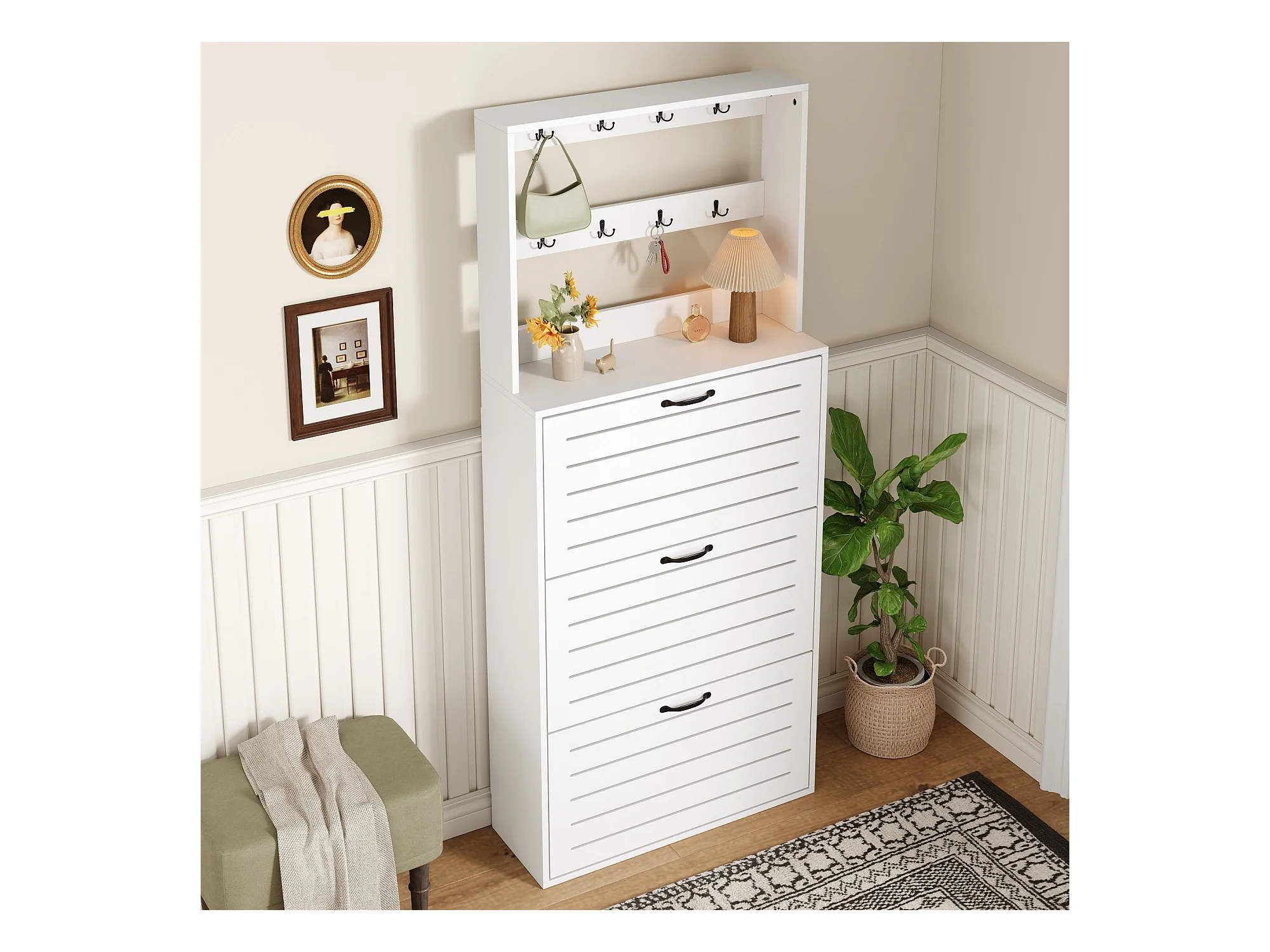 Schoenenkast met 3 opvouwbare lades, vrijstaand, kantelbare schoenenkast
