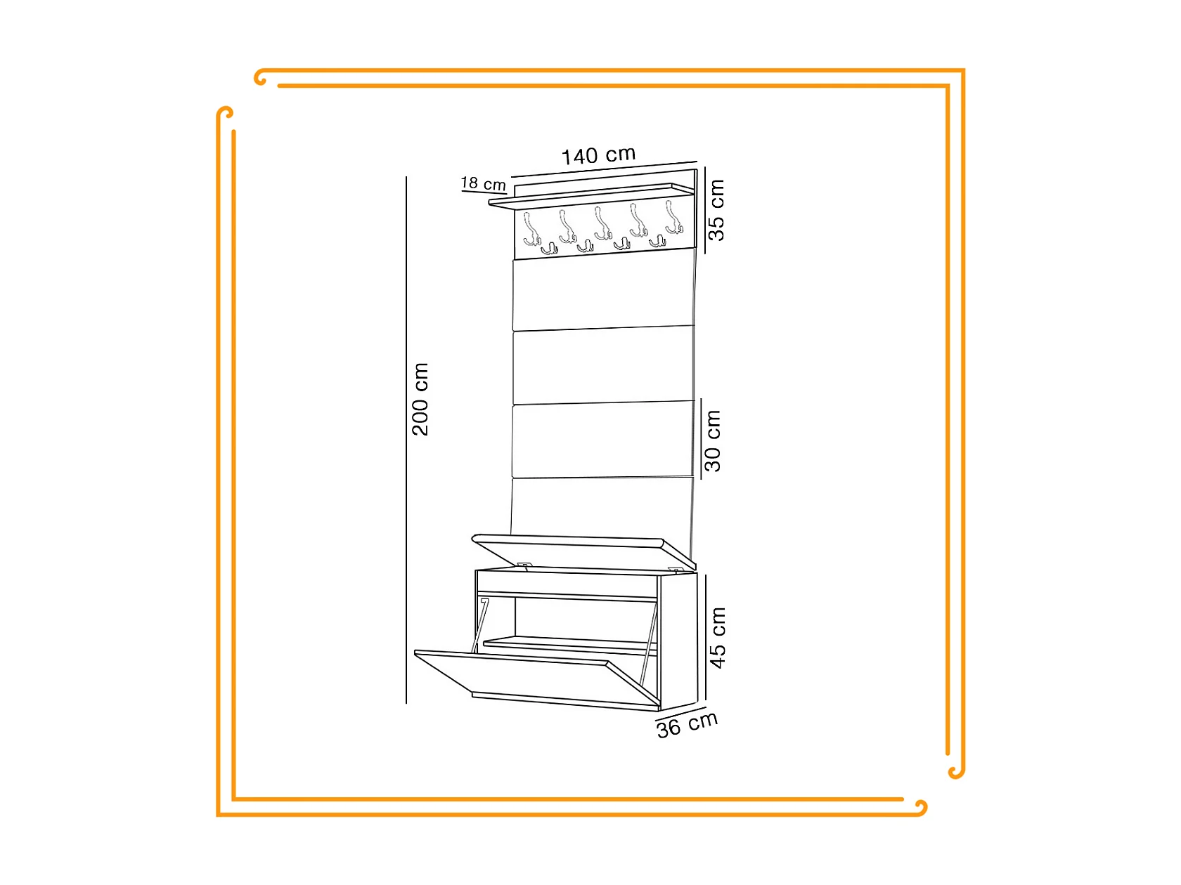 Schoenenkast met Zitbank Bekleed Kapstok voor de Hal
