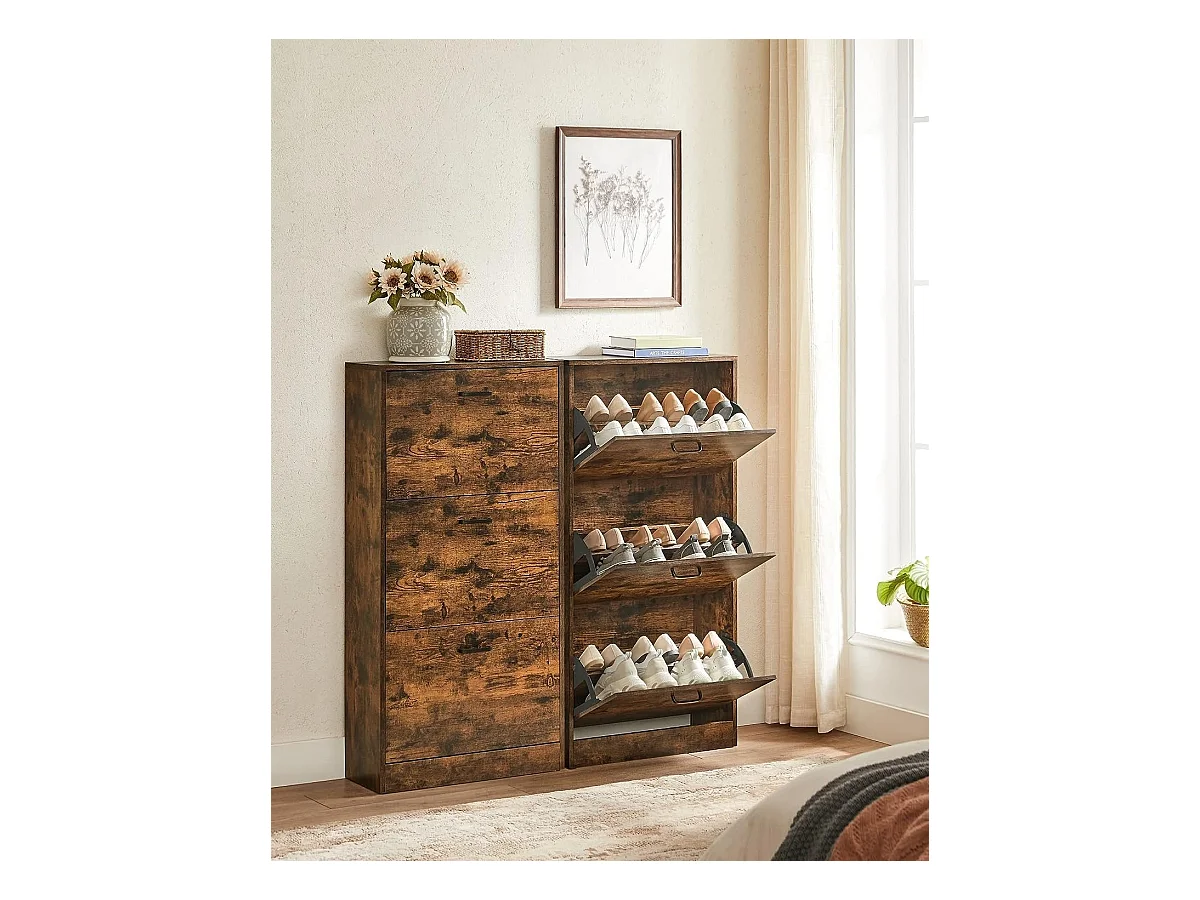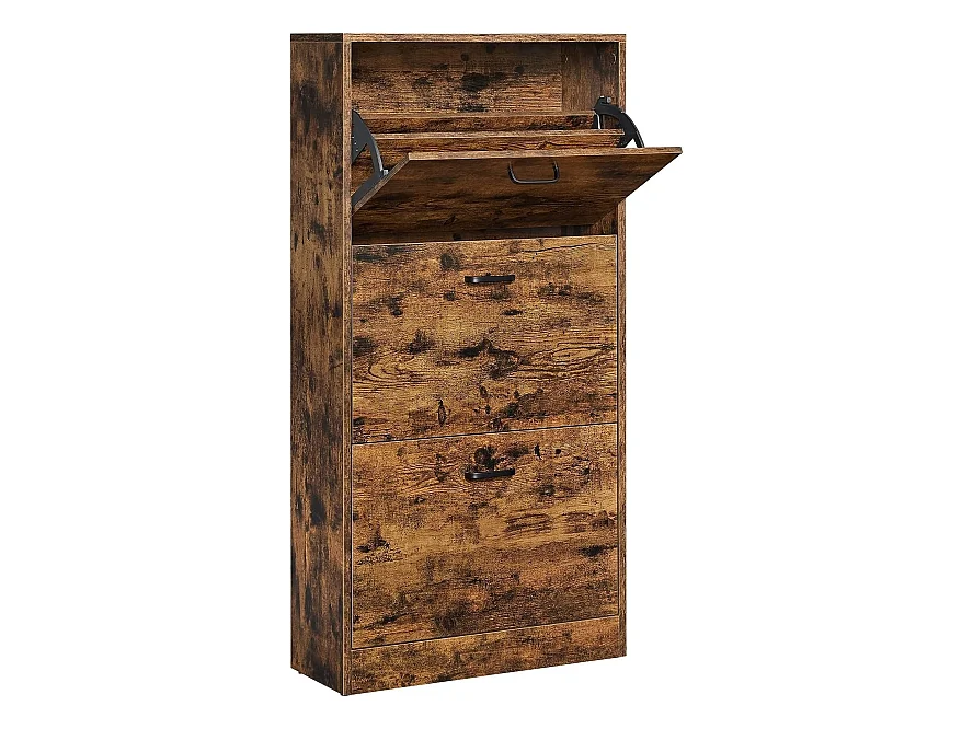 Schoenenkast met 2 deuren en 1 klep in notendecor - H90,4 cm
