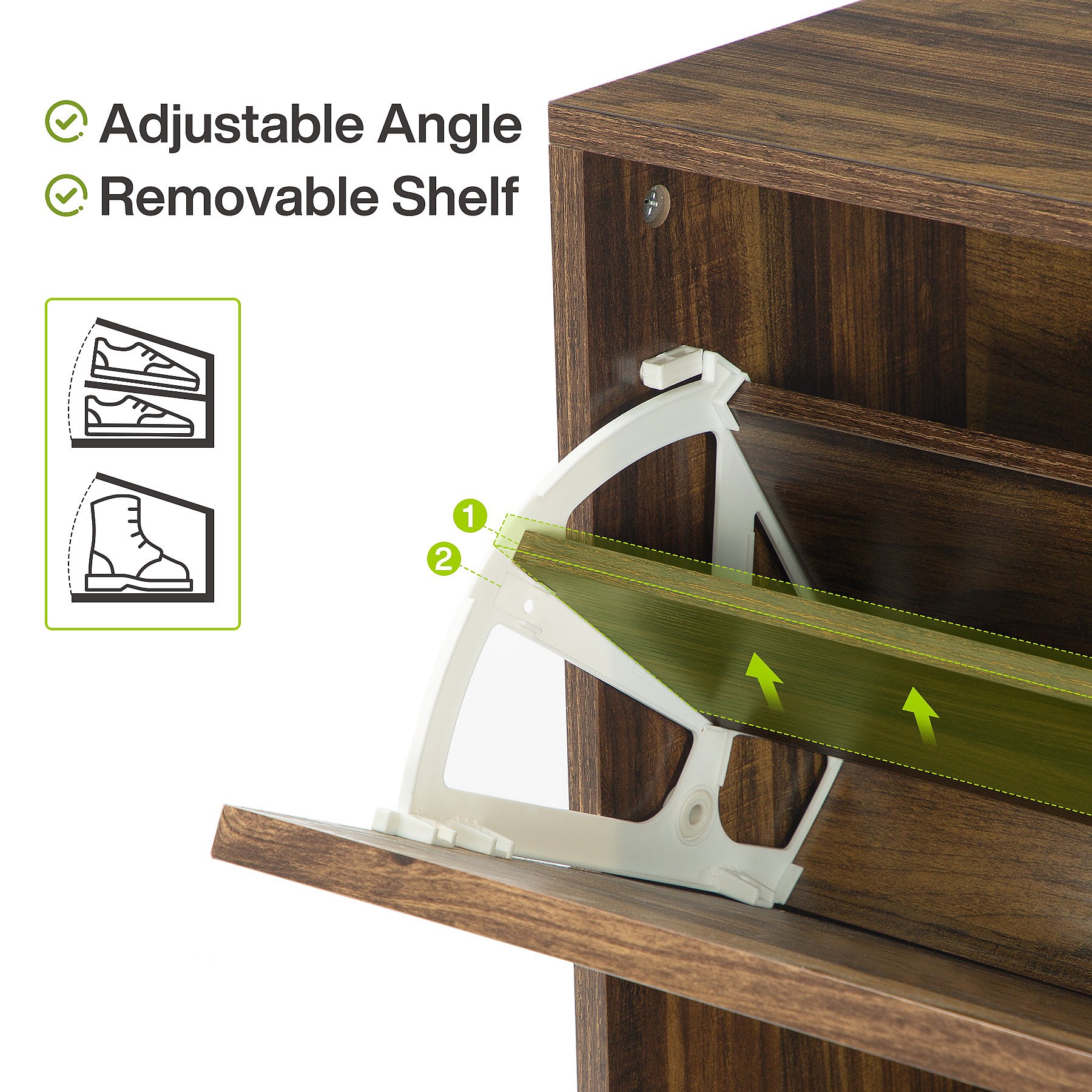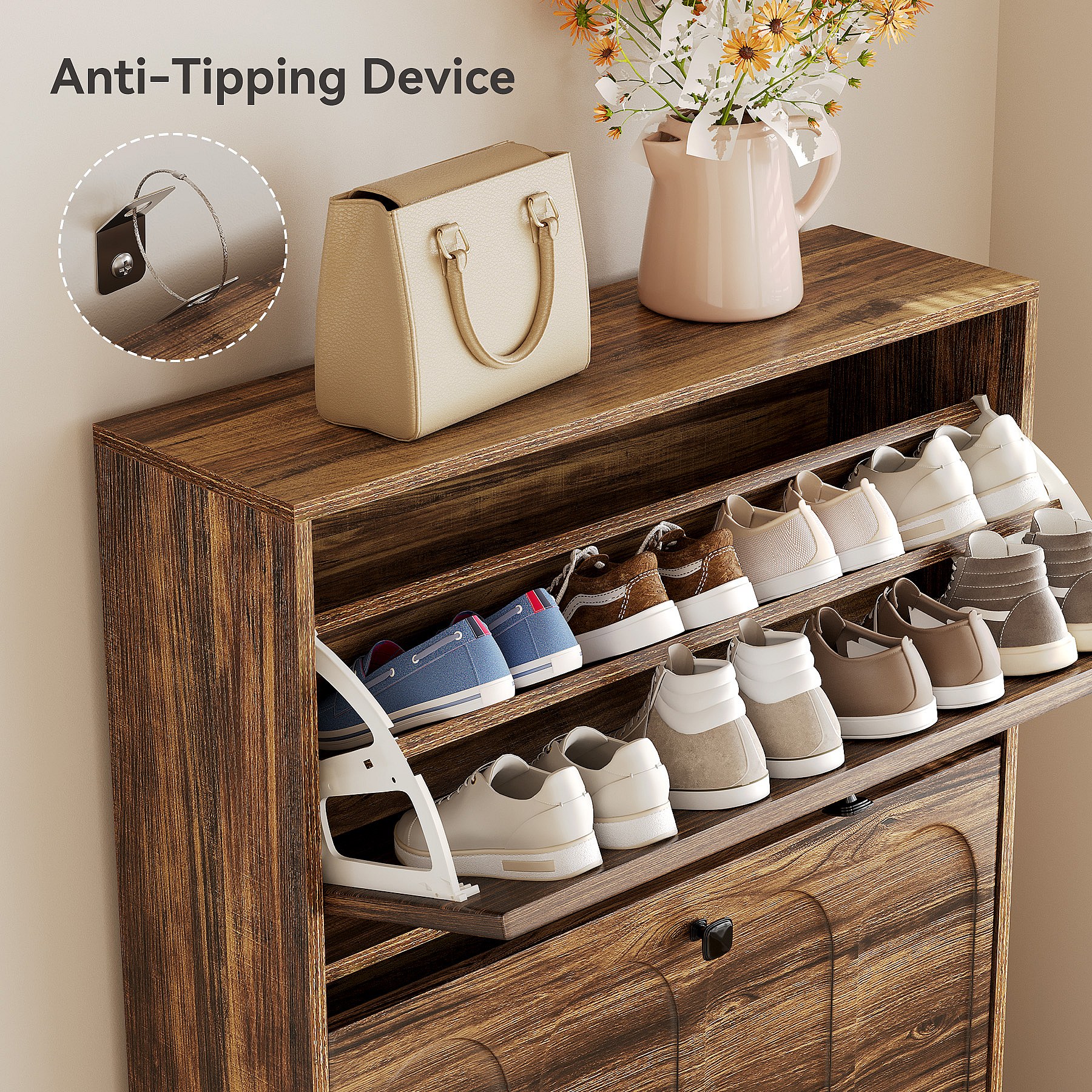 Schoenenkast, 25 paar schoenenkasten met deuren, wit en bruin