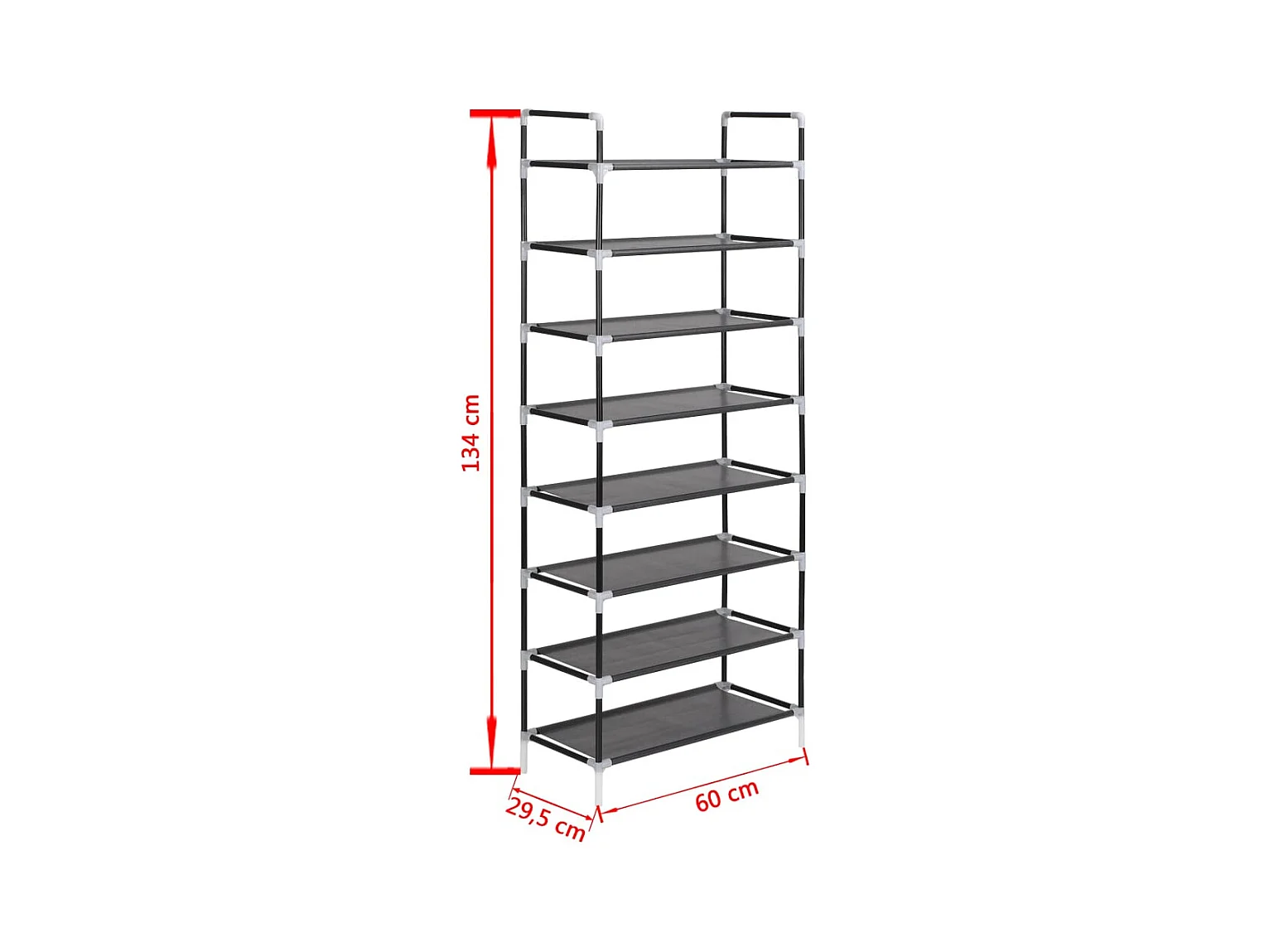 Schoenenrek met 8 planken Metaal en non-woven stof Zwart