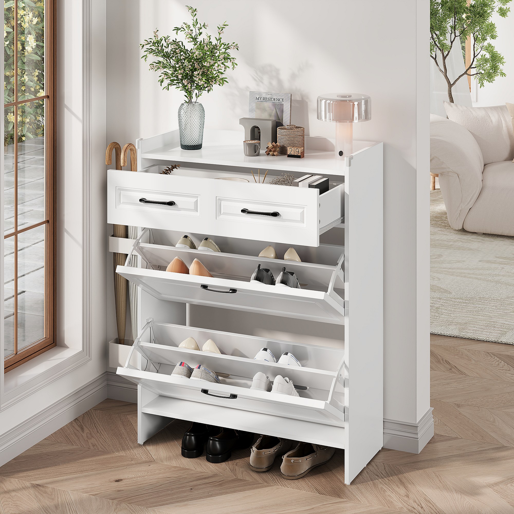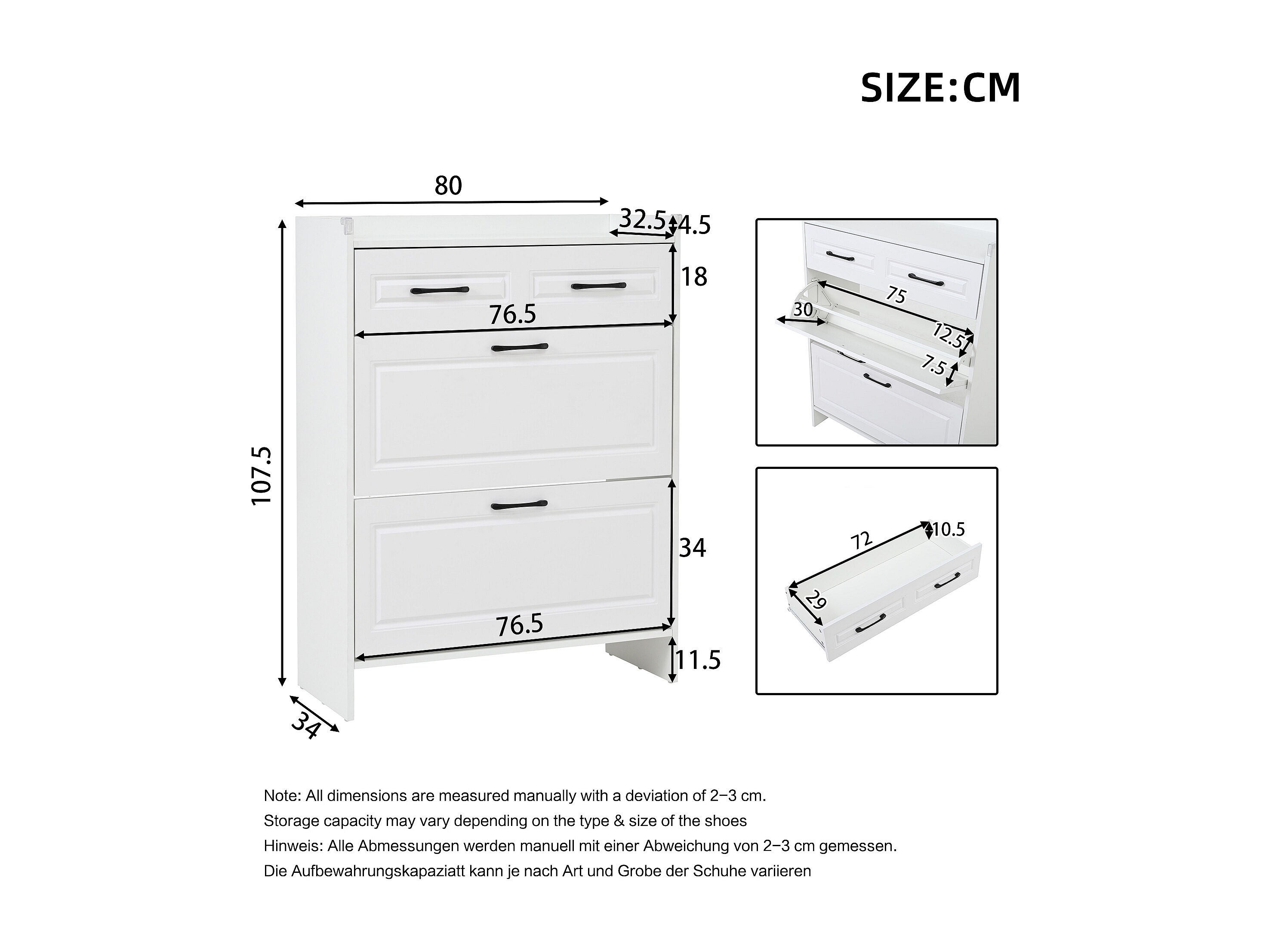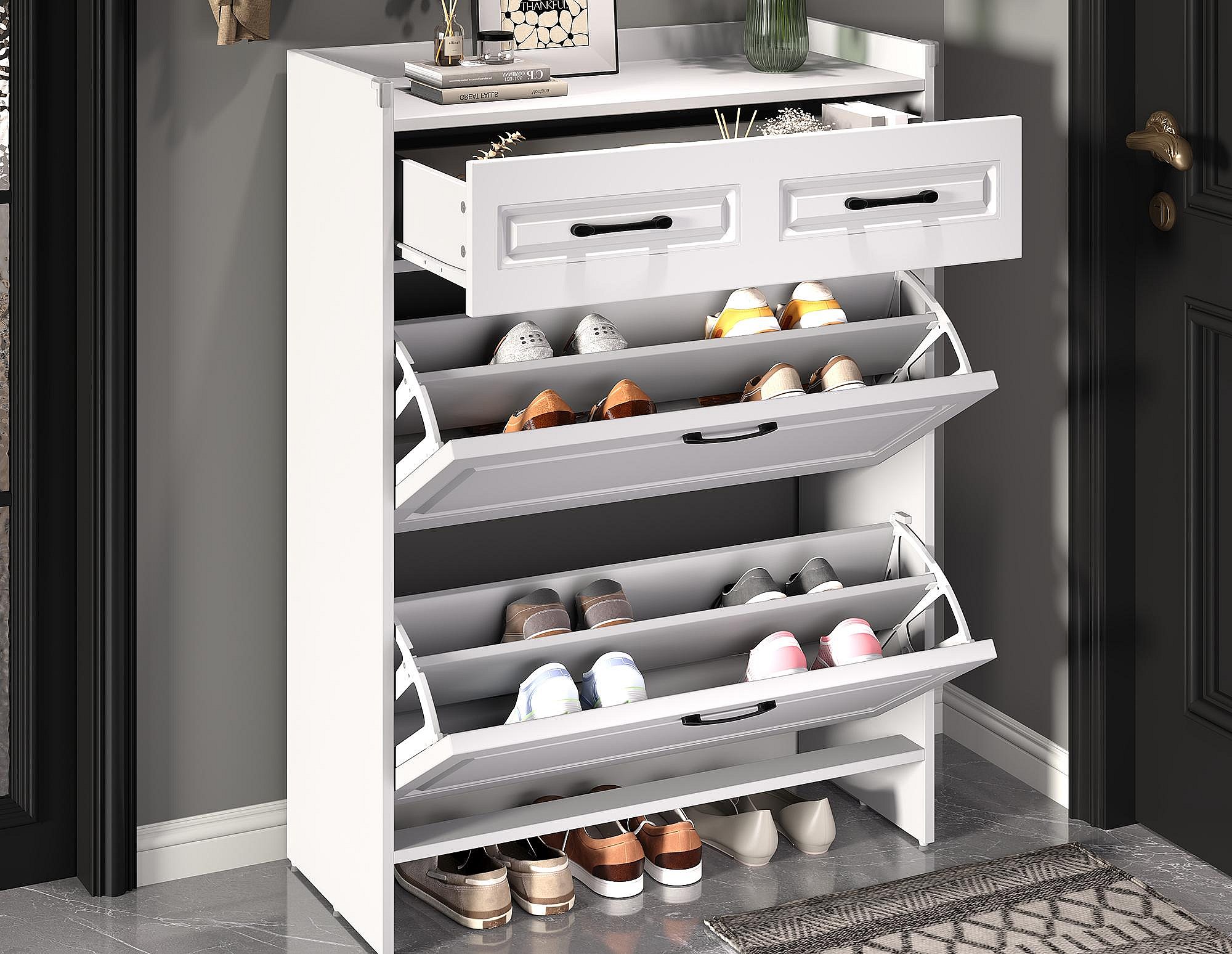 Schoenmeubel 80x34x107,5 cm - 2 klepdeuren en 1 lade - 4 vakken - MDF - Wit