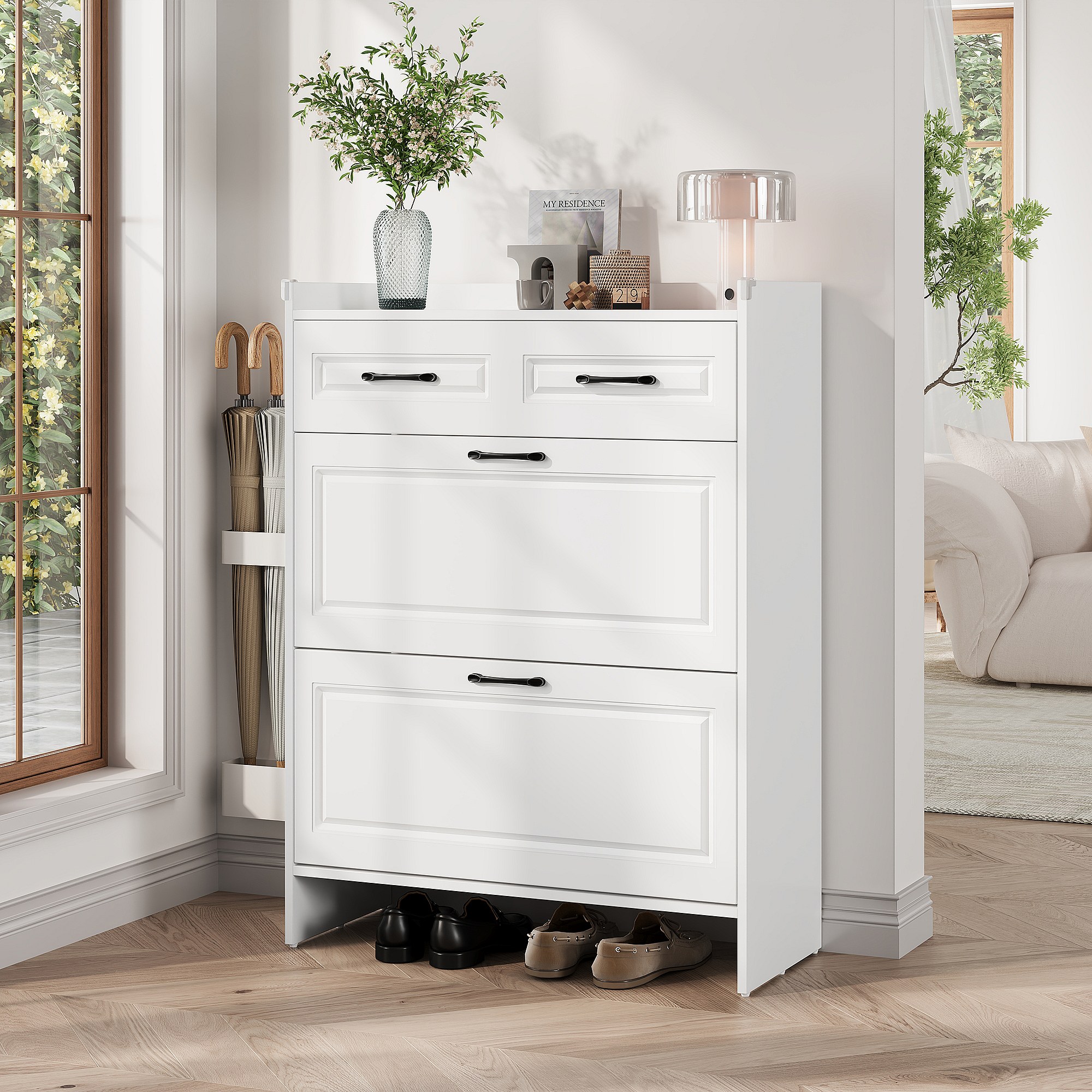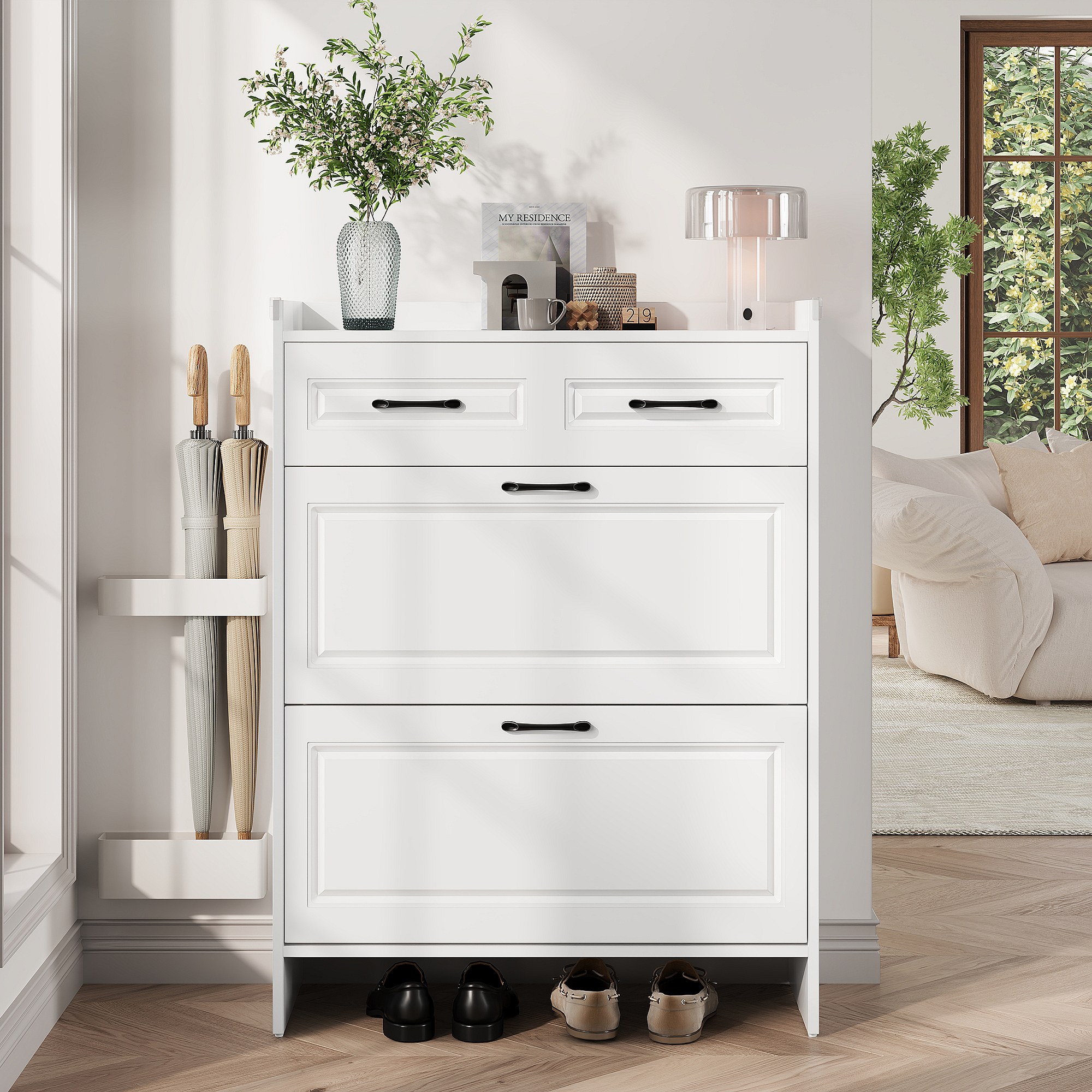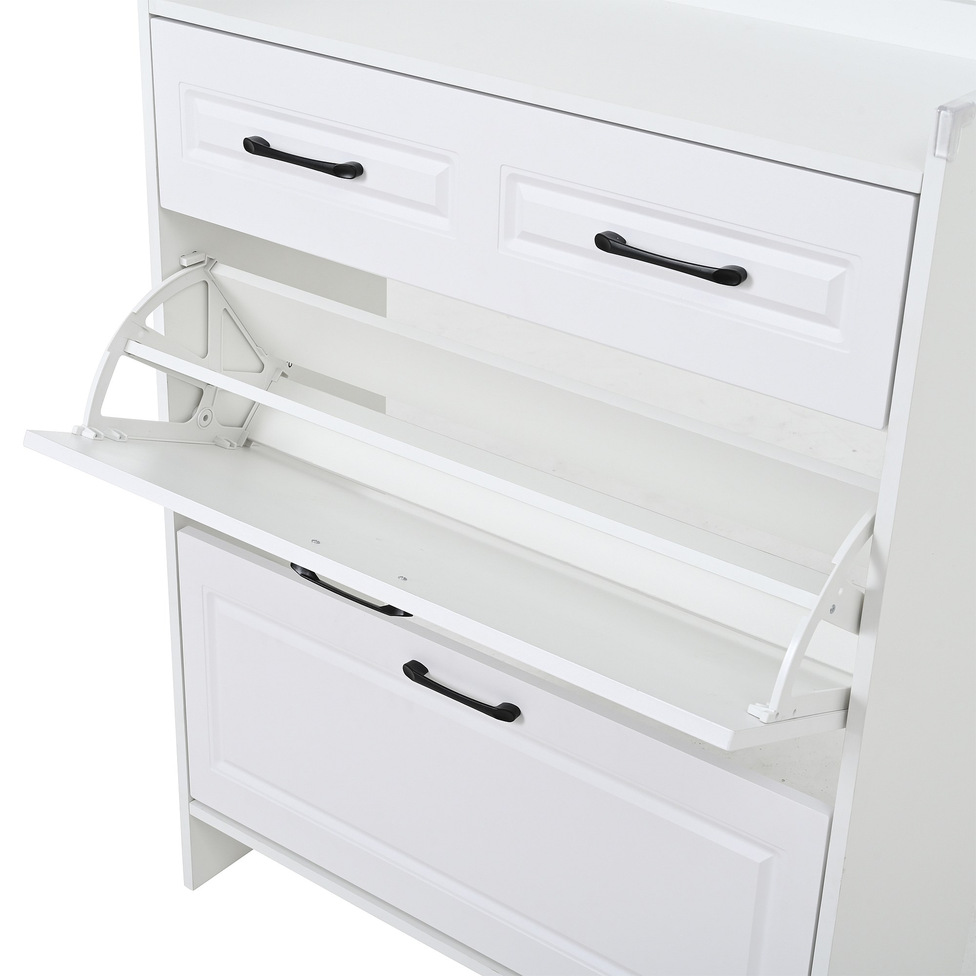 Schoenmeubel 80x34x107,5 cm - 2 klepdeuren en 1 lade - 4 vakken - MDF - Wit