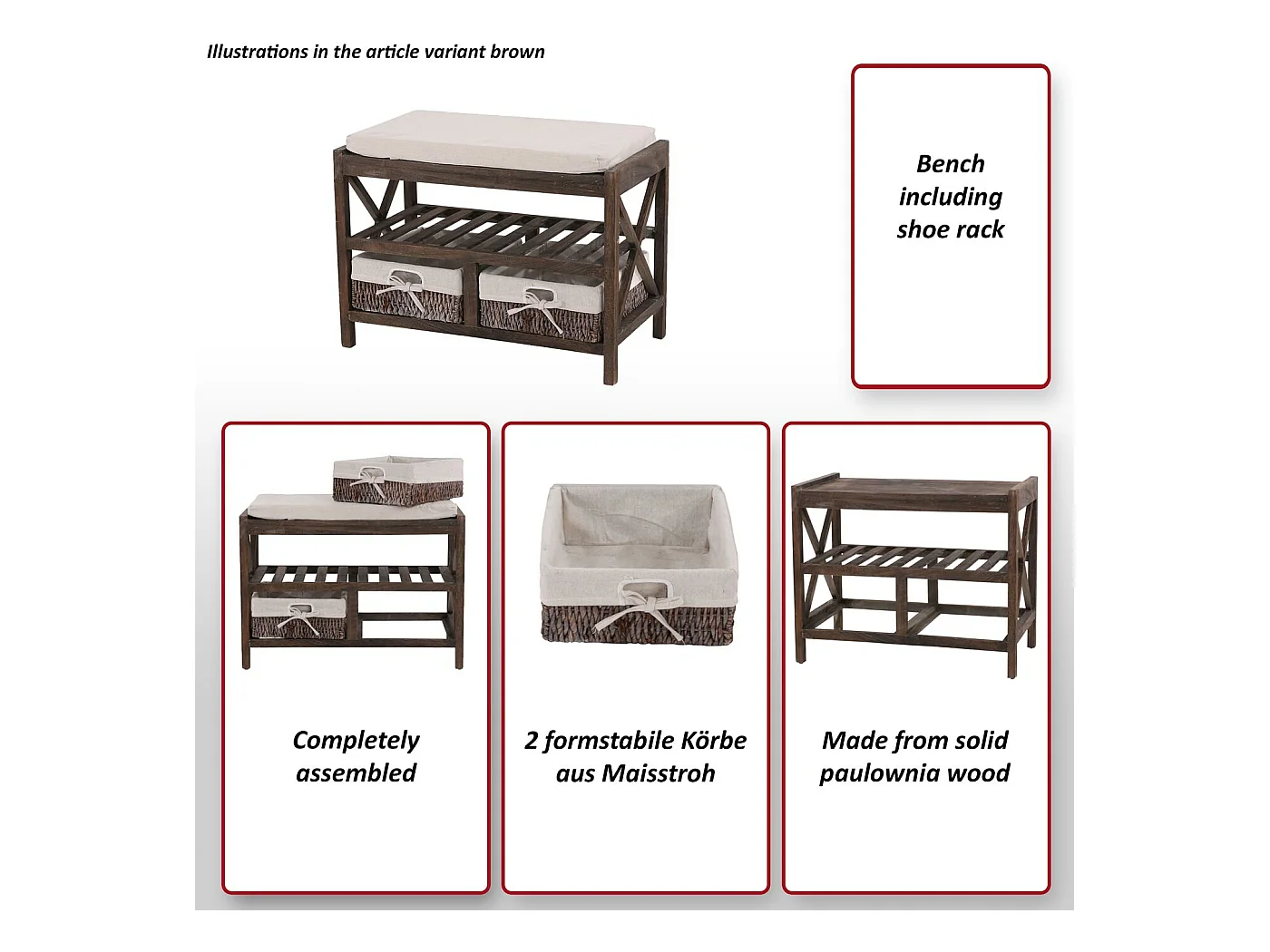 Schoenenrek MCW-C48 zitbank, bruin