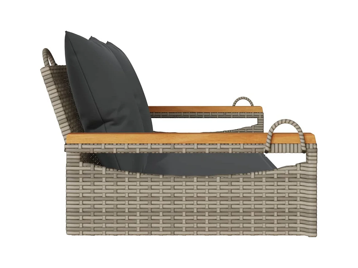 Schommelbank met kussens 119x56x48 cm poly rattan grijs