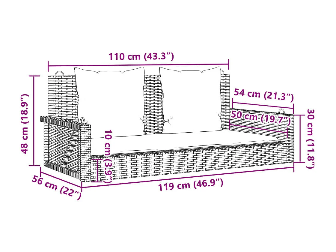 Schommelbank met kussens 119x56x48 cm poly rattan beige