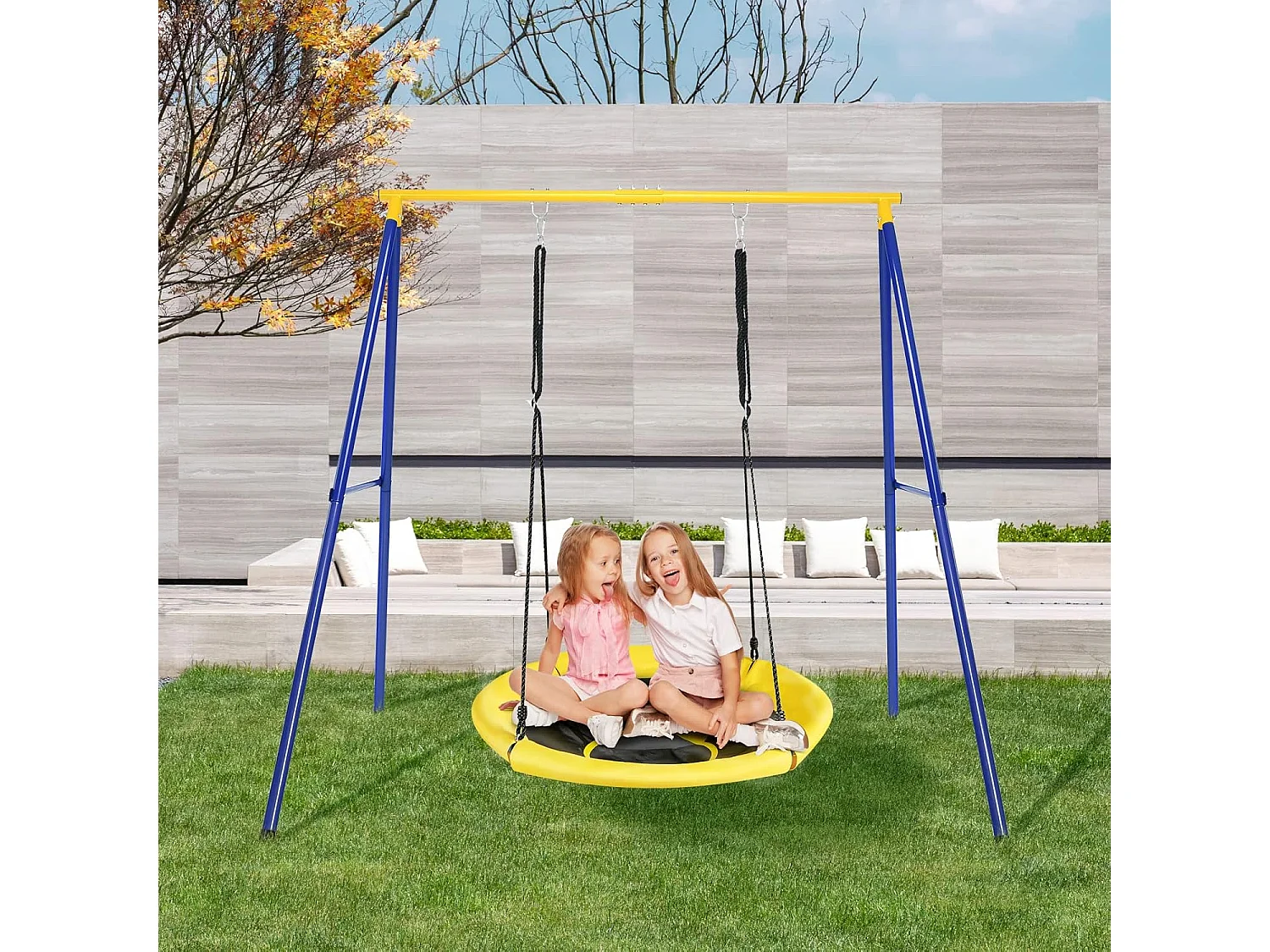4-in-1 schommelset, schommelframe met schommel, glijbaan en basketbalmand,schommelframe met dubbele schommel,tuinschommel met metalen frame voor binnenplaats, tuin