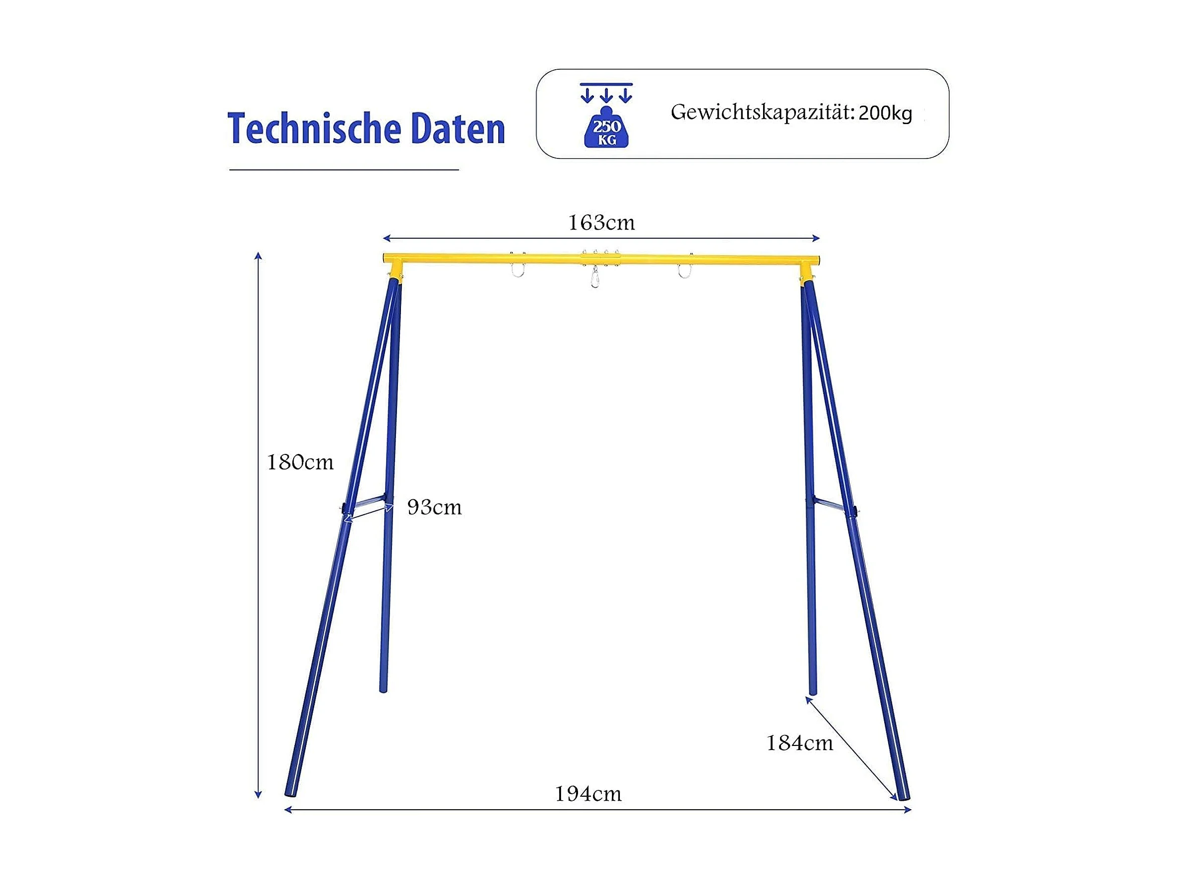 Schommelframe tot 200 kg belastbaar, schommelframe voor nestschommel, kinderschommel, schommelframe voor tuin, 194 x 184 x 180 cm ZB32776