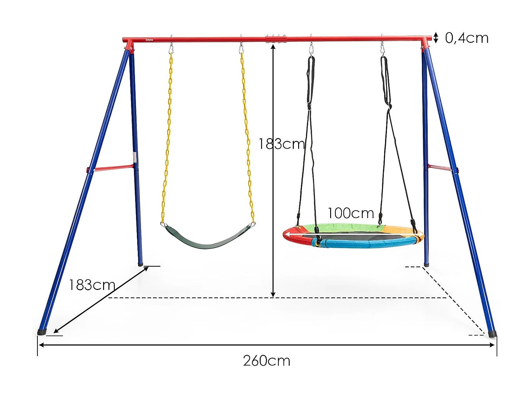 Schommelframe van metaal, belastbaar tot 250 kg, schommelframe met grondanker, voor nestschommel, kinderschommel, dubbele schommel (alleen frame) ZB32788-3