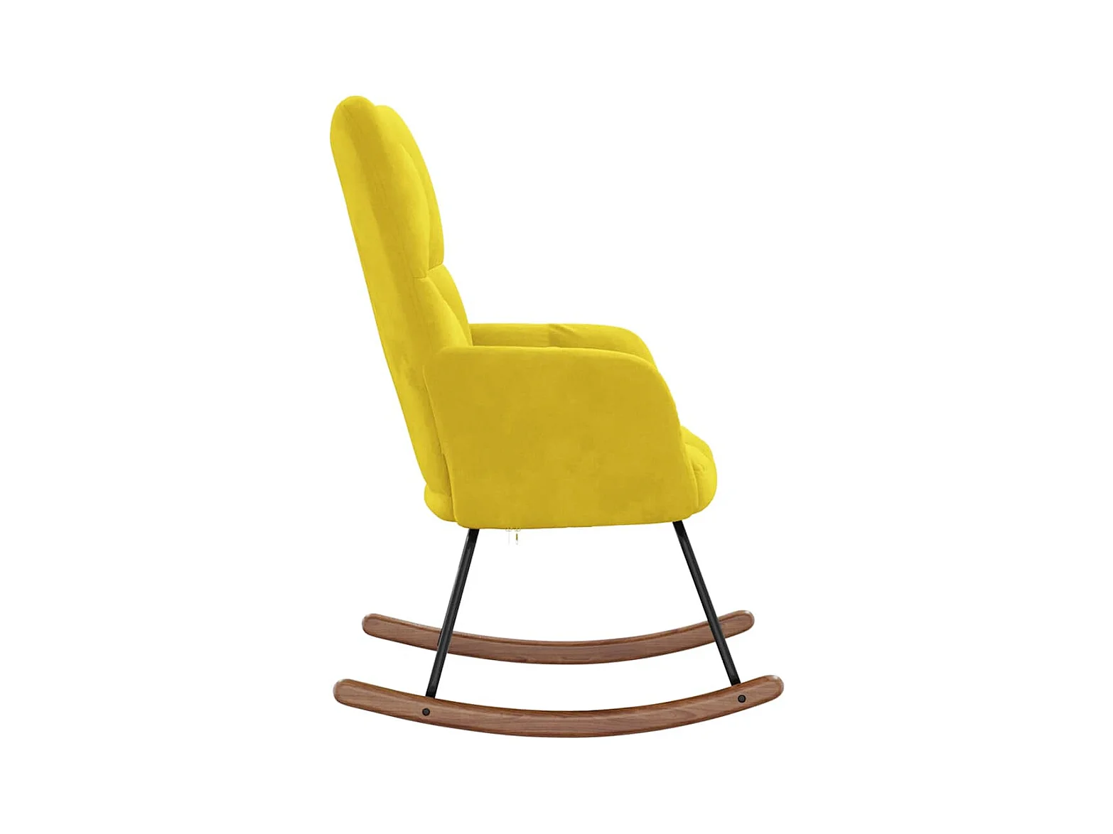 Schommelstoel met houten poten en voetenbank fluweel geel