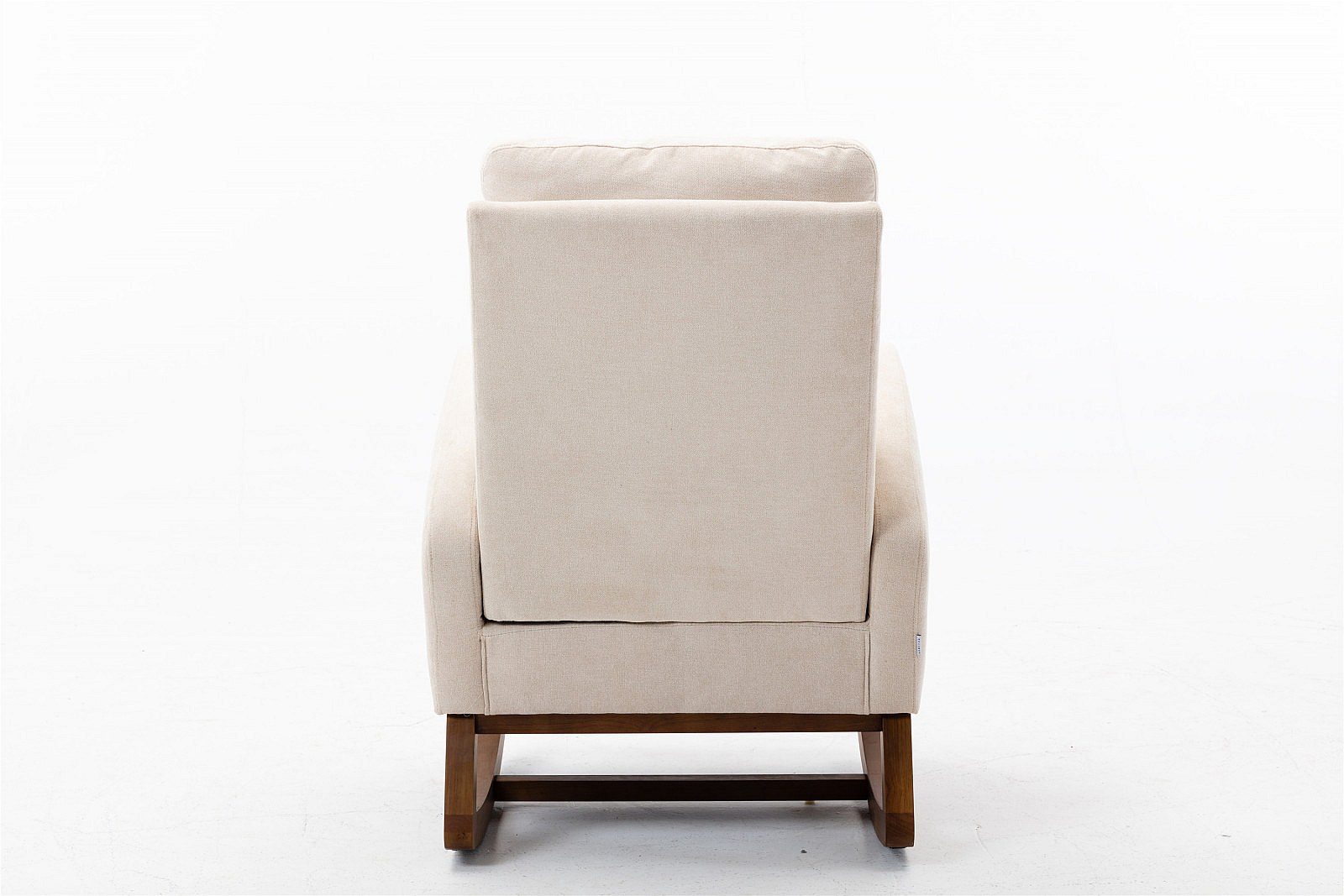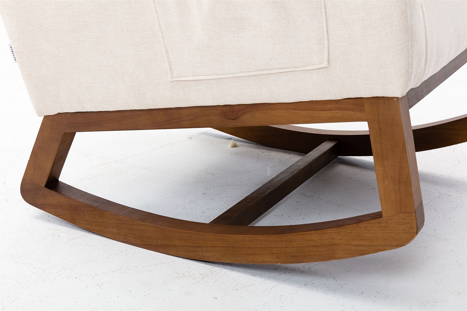 Schommelstoel - Gevoerde rugleuning - Houten poten - Beige