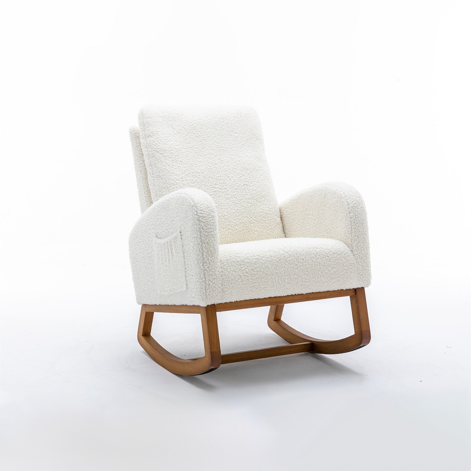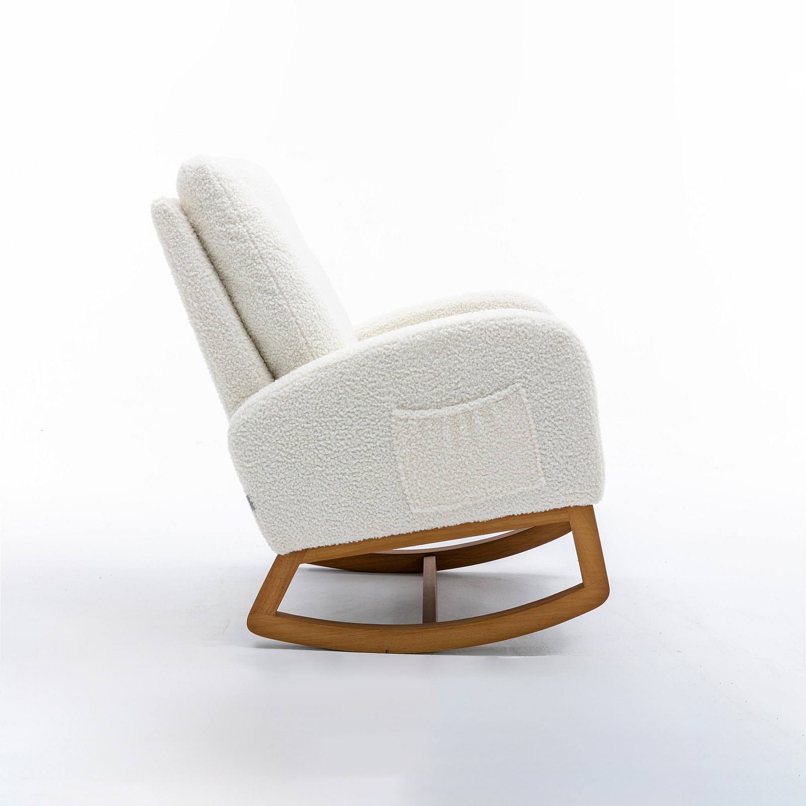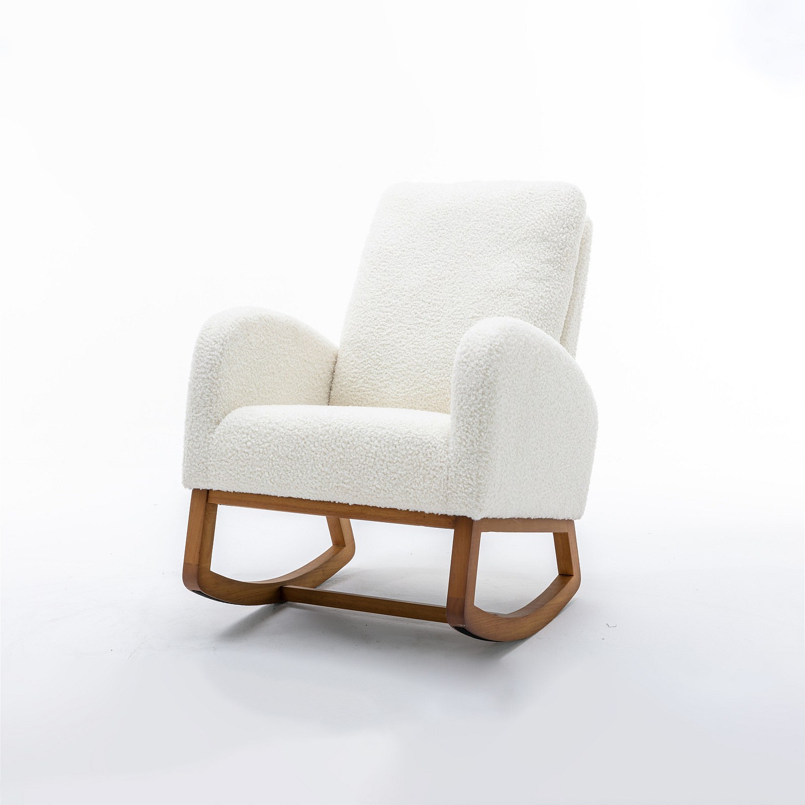 Schommelstoel - Gevoerde rugleuning - Houten poten - Wit