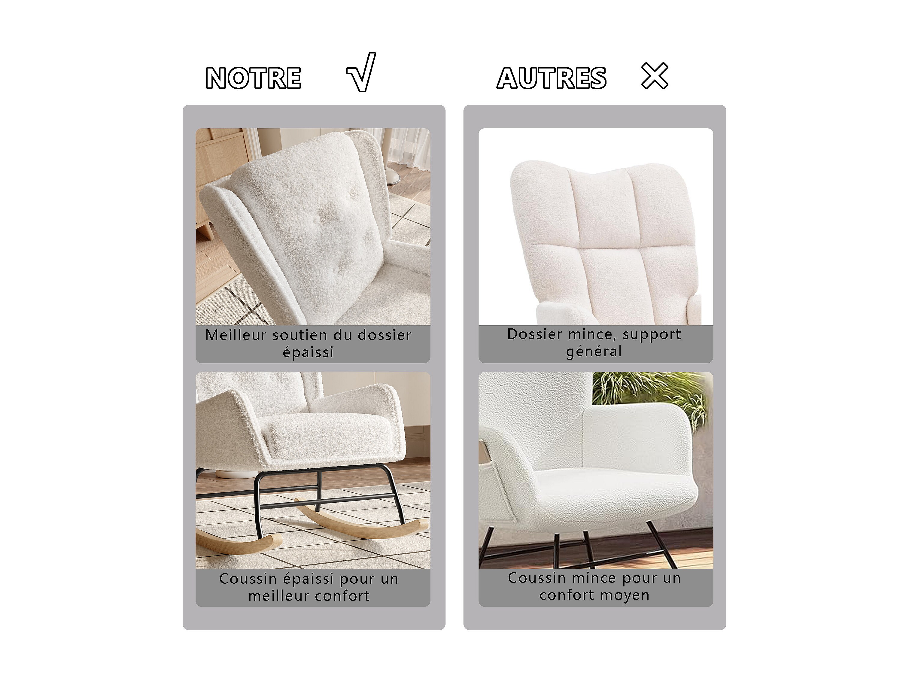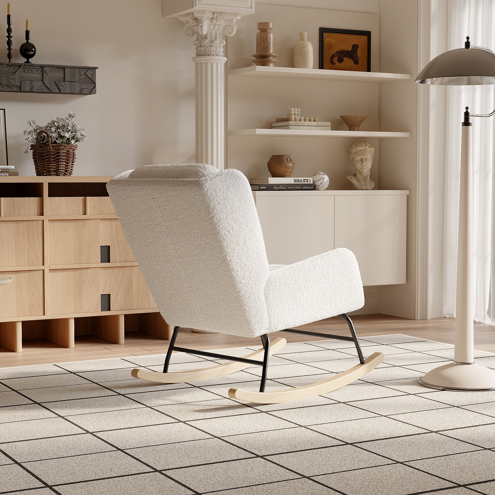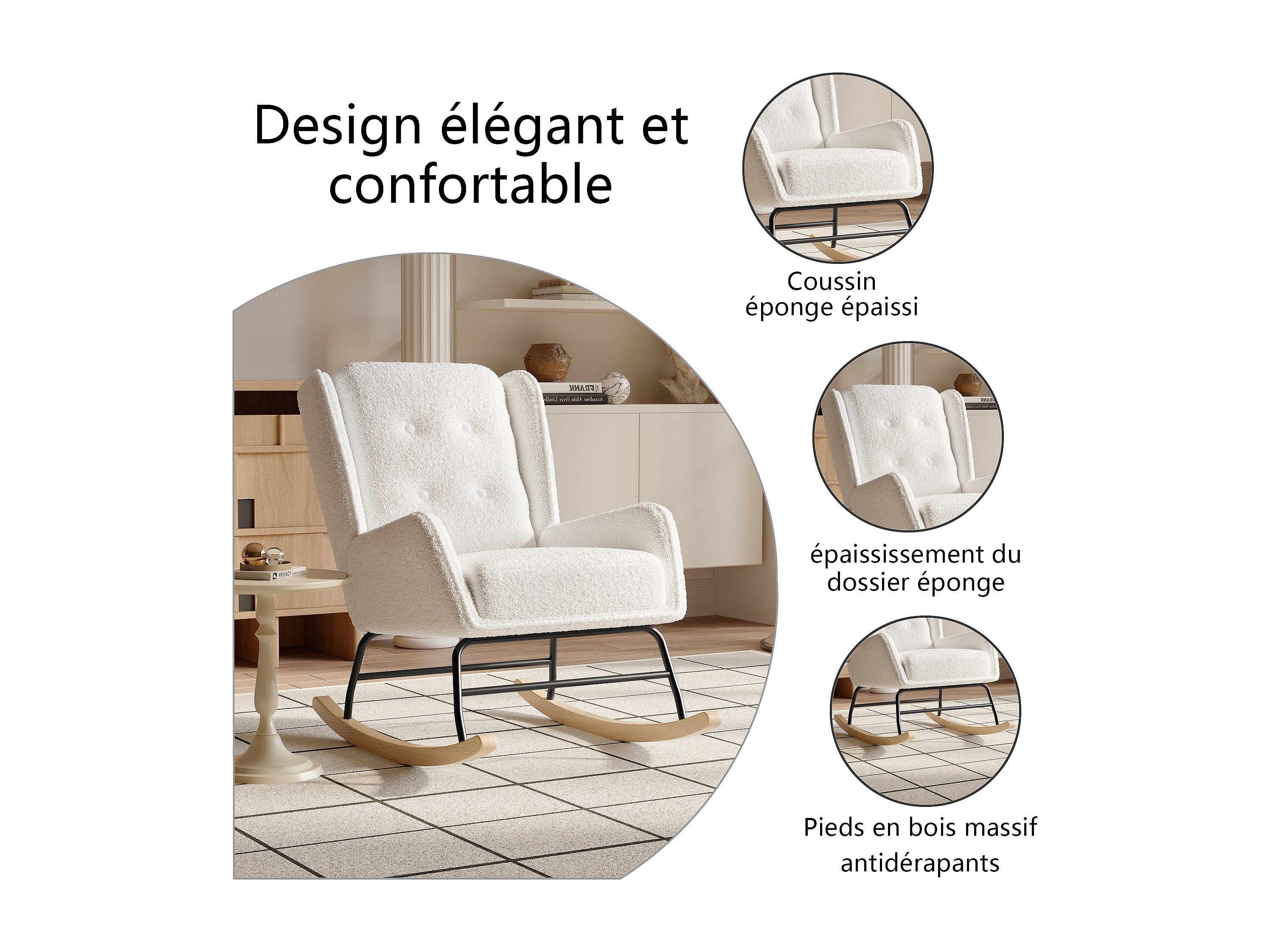 Schommelstoel, kasjmier imitatie hoes, schommelstoel, wit